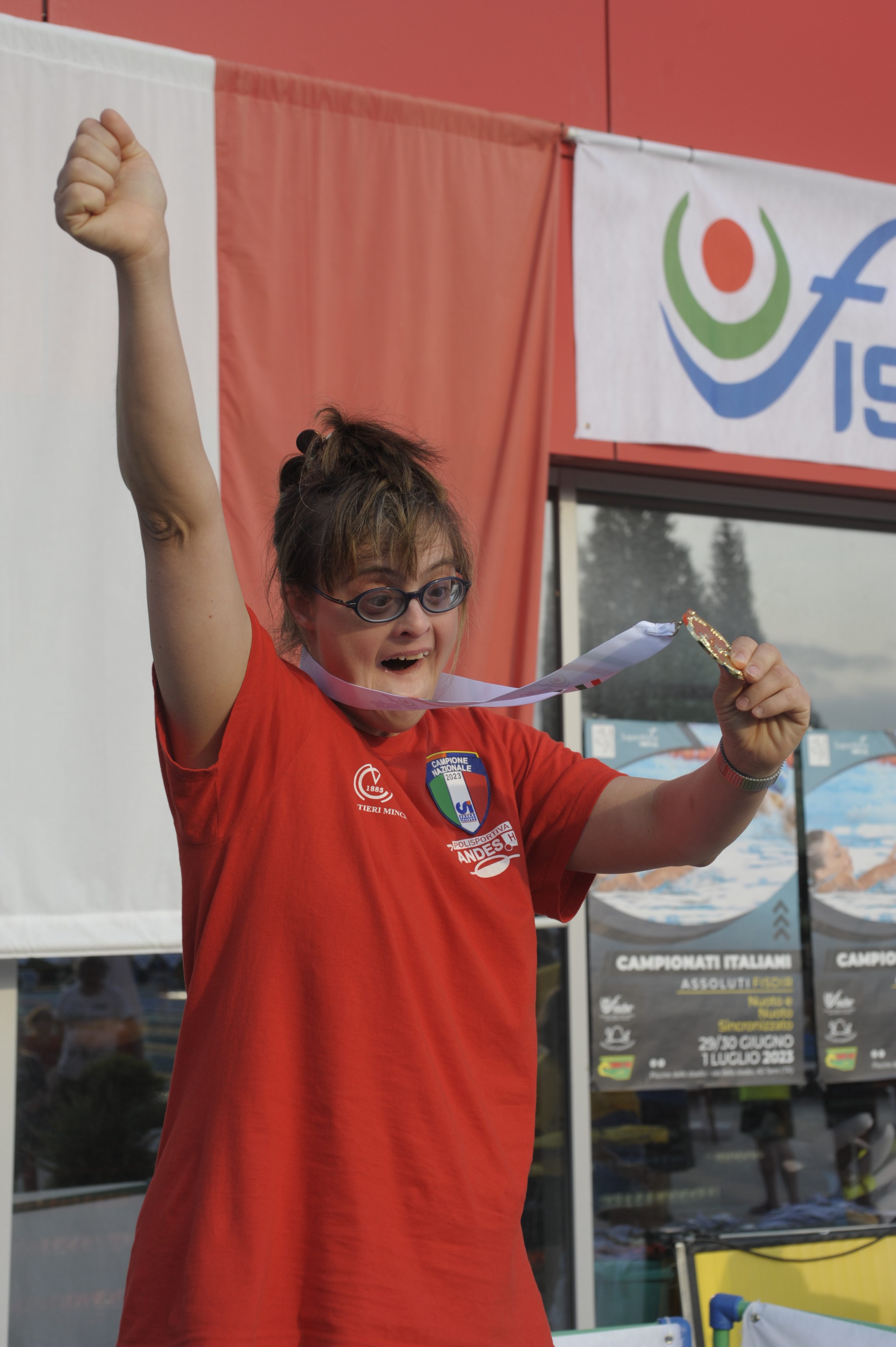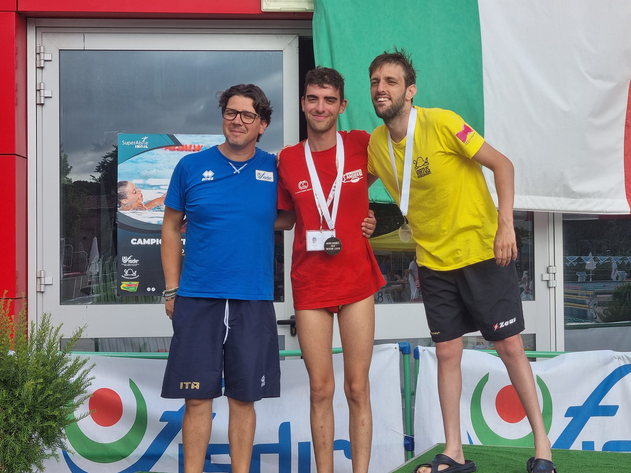 Miglior tempo assoluto, giungendo 5° negli 800 in 14′ netti e 6° nei 400 nuotati in 6.31 dopo che aveva vinto la sua batteria. Nei 1500 nuotati bene come non mai, con il passaggio in negativo nella seconda parte della gara, tanto da vincere l’argento e cogliere la meritatissima soddisfazione della sua prima medaglia agli assoluti FISDIR. Una gara decisamente impegnativa quanto competitiva con la presenza degli atleti della nazionale, da poco tornati dal torneo internazionale di Vichy dove si sono piazzati secondi alle spalle dell’Australia.