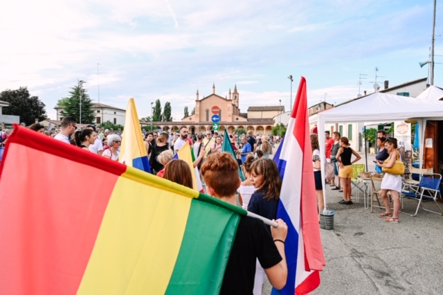 I bambini hanno sfilato a lato della piazza, alcuni portando le bandiere delle Nazioni degli artisti presenti quest’anno sul sagrato e, con loro, hanno sfilato alcuni dei maestri madonnari. Una sfilata coloratissima e piena di allegria a testimoniare anche come l’arte sia un grande elemento di unione tra i popoli.