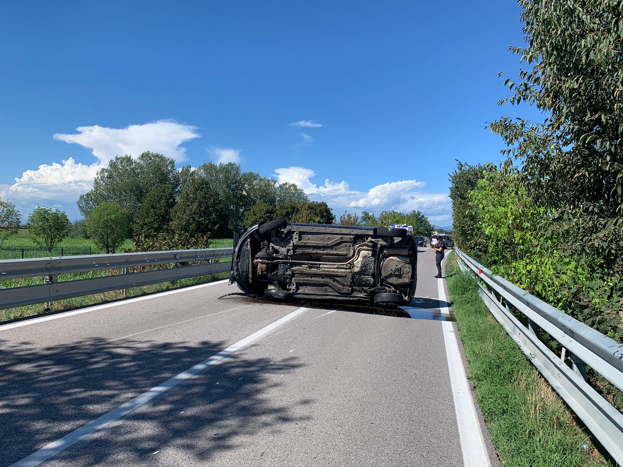 ROVERBELLA – Incidente questo pomeriggio sulla provinciale 62 a Castiglione Mantovano in direzione Mozzecane. Una Opel Corsa con alla guida un ragazzo messicano di 46 anni residente a Porto Mantovano in un sorpasso azzardato ha urtato lateralmente due vetture e mentre cercava di rientrare nella sua careggiata ha sbandato, l’auto si è rovesciata e ha rotolato per circa 300 metri fermandosi su un fianco. Cinque le persone coinvolte, fortunatamente tutte illese per cui nessun ricovero in ospedale, su una delle due auto urtate viaggiavano due donne di 52 anni di Povegliano Veronese, mentre sulla Mini una coppia di Marcaria di 55 e 58 anni.