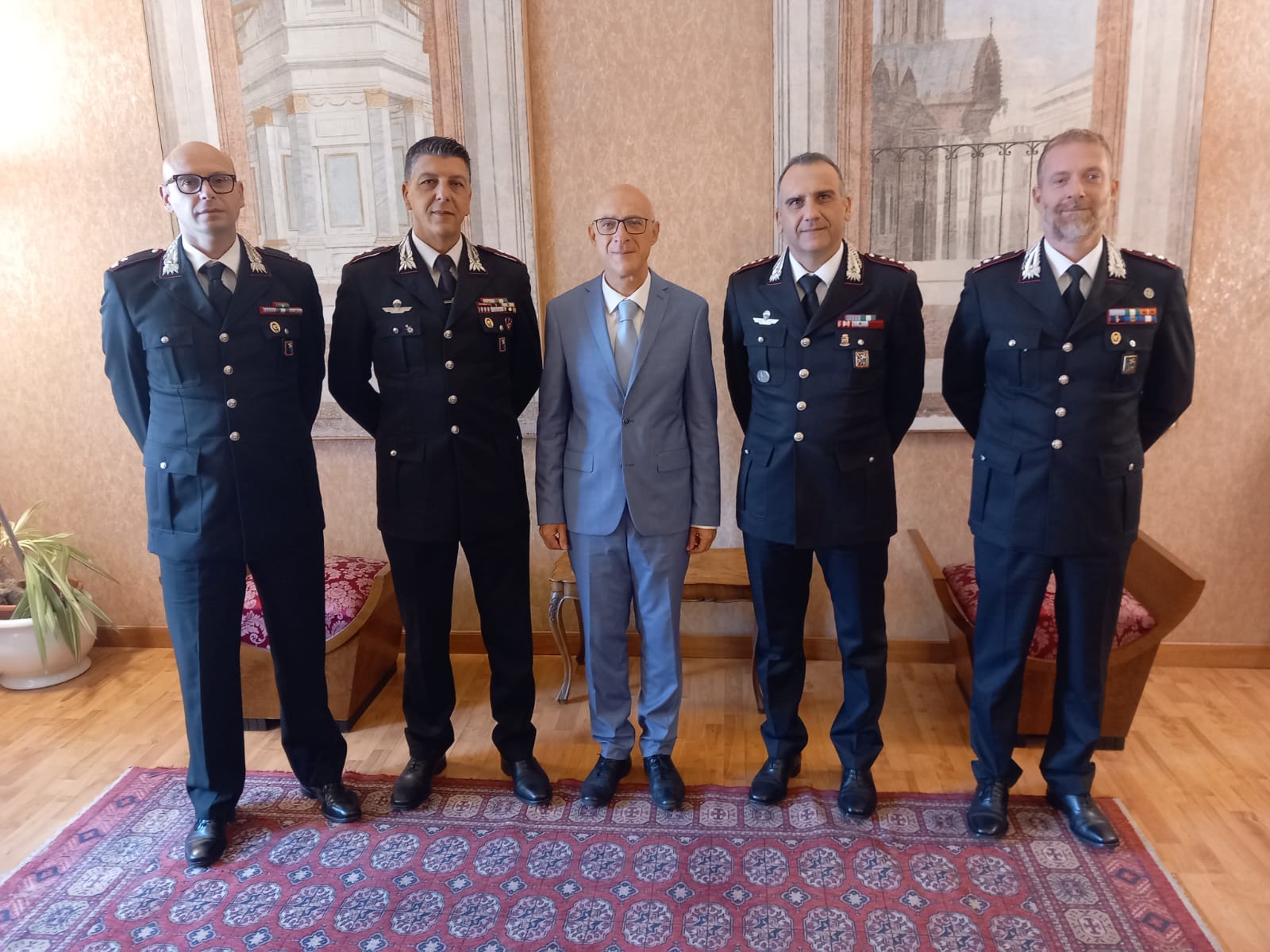 MANTOVA – Questa mattina, il Prefetto della Provincia di Mantova, Roberto Bolognesi, nel corso di una breve cerimonia, ha salutato il Colonnello Vincenzo Di Stefano, Comandante Provinciale dei Carabinieri di Mantova, e i comandanti delle Compagnie Carabinieri di Castiglione delle Stiviere, Viadana e Gonzaga, rispettivamente il Tenente Colonnello Manuel Sacchetto, Tenente Colonnello Giovanni Martufi e il Maggiore Giuseppe Fiore.