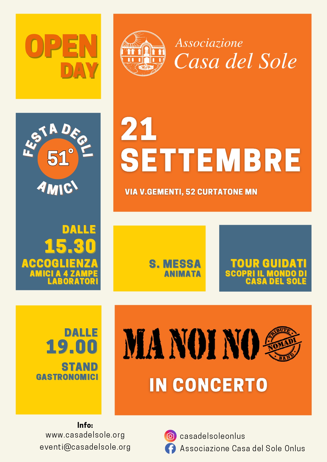 CURTATONE – Alla Casa del Sole è tutto pronto per la 51° Festa degli Amici che si terrà domenica prossima, 21 settembre. Per l’occasione la struttura si trasformerà in un palcoscenico di gioia, scoperta e condivisione, aprendo le sue porte per l’atteso Open Day che segna l’inizio della Festa. Un pomeriggio ricco di attività, incontri e momenti di convivialità, pensato per coinvolgere tutte le età.