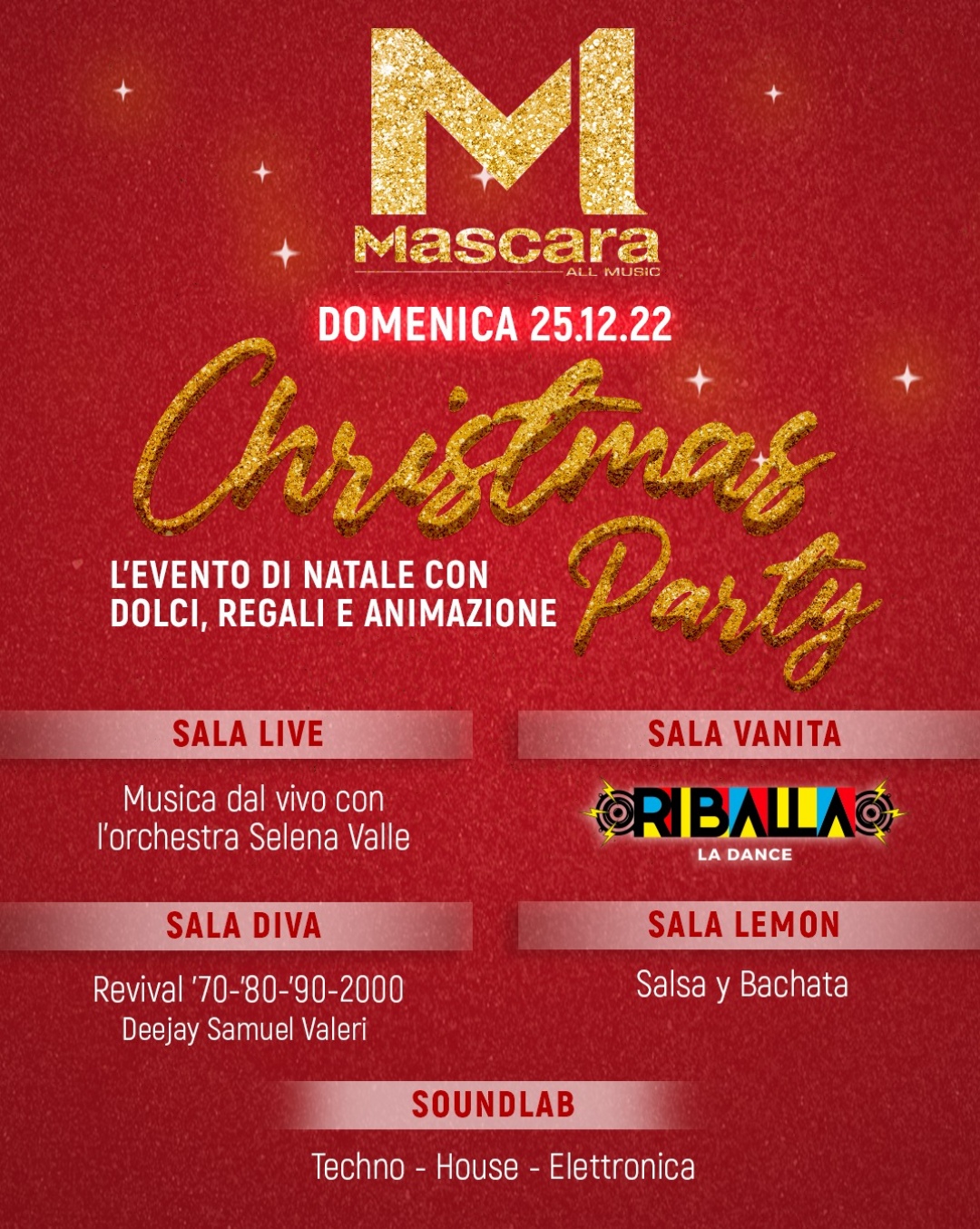 MANTOVA – Tutte le sale aperte per tutti i gusti di musica e per tutte le età: è questo il Natale del Mascara che con il “Christmas Party” la sera del 25 dicembre promette dolci, regali, sorprese e animazione oltre, ovviamente, alla buona musica.