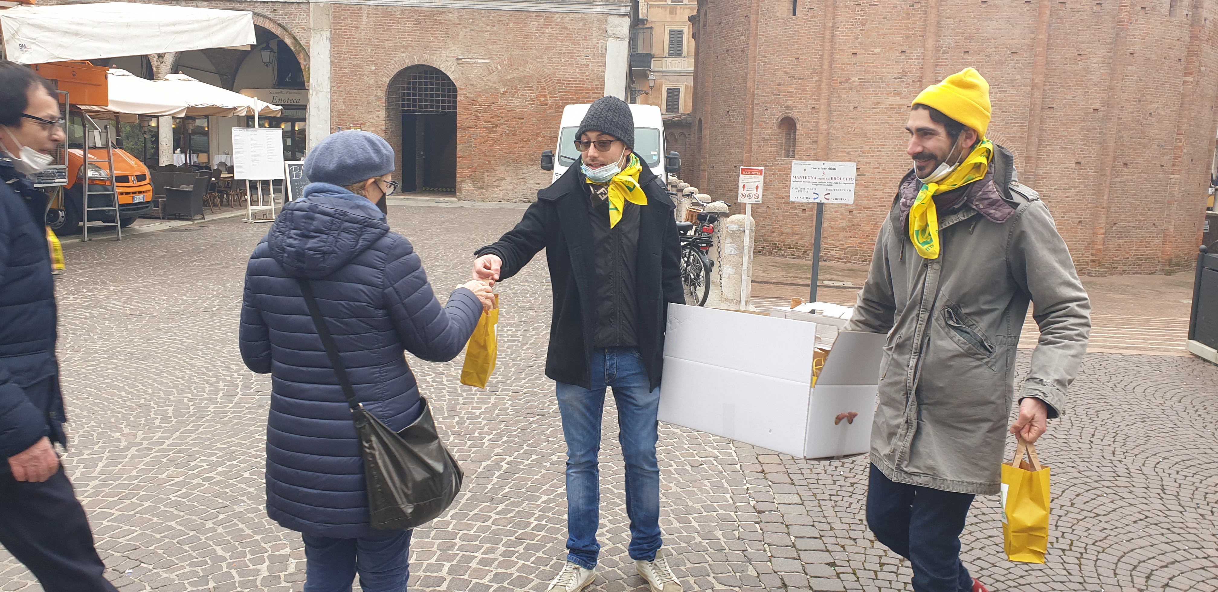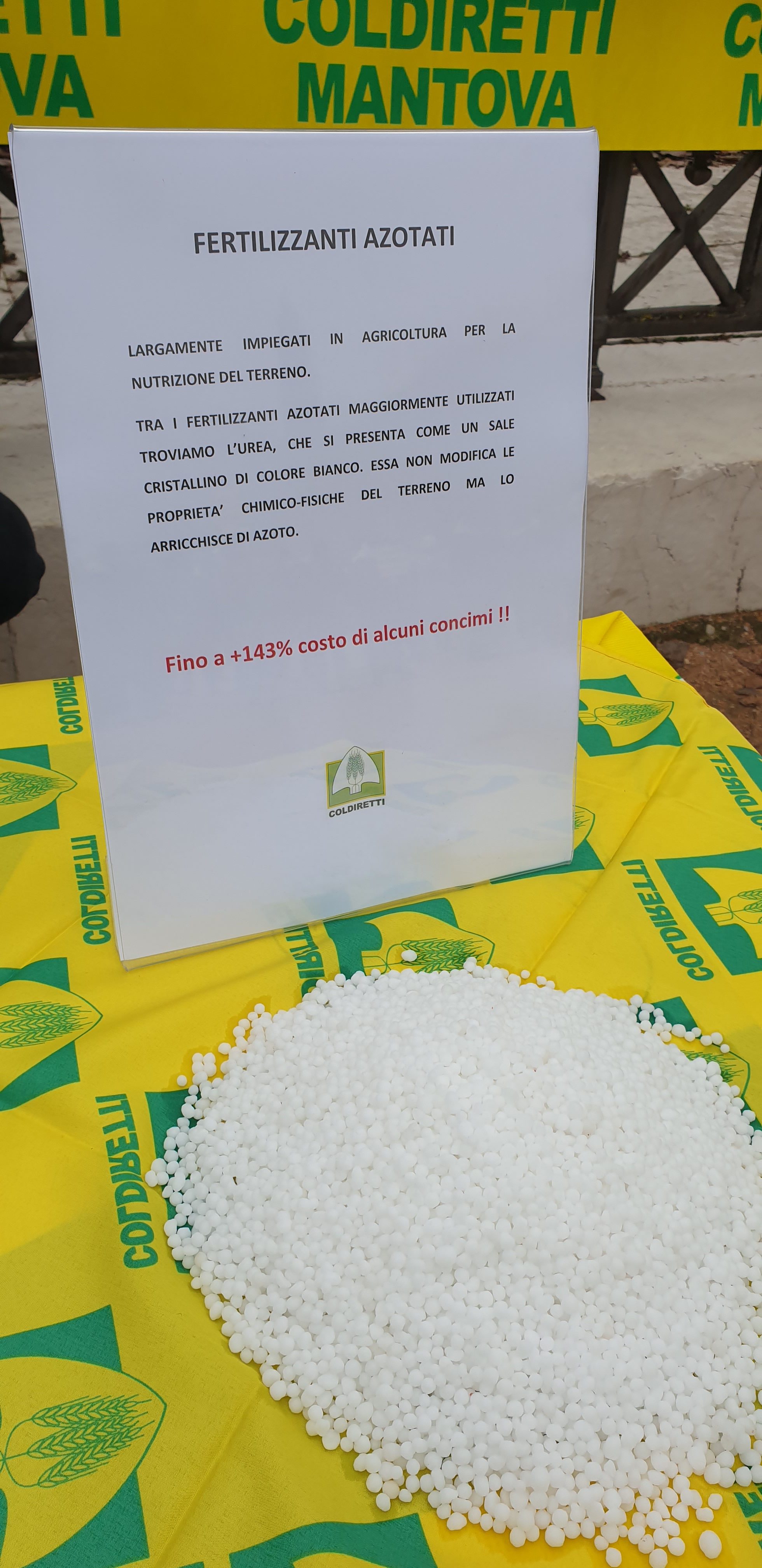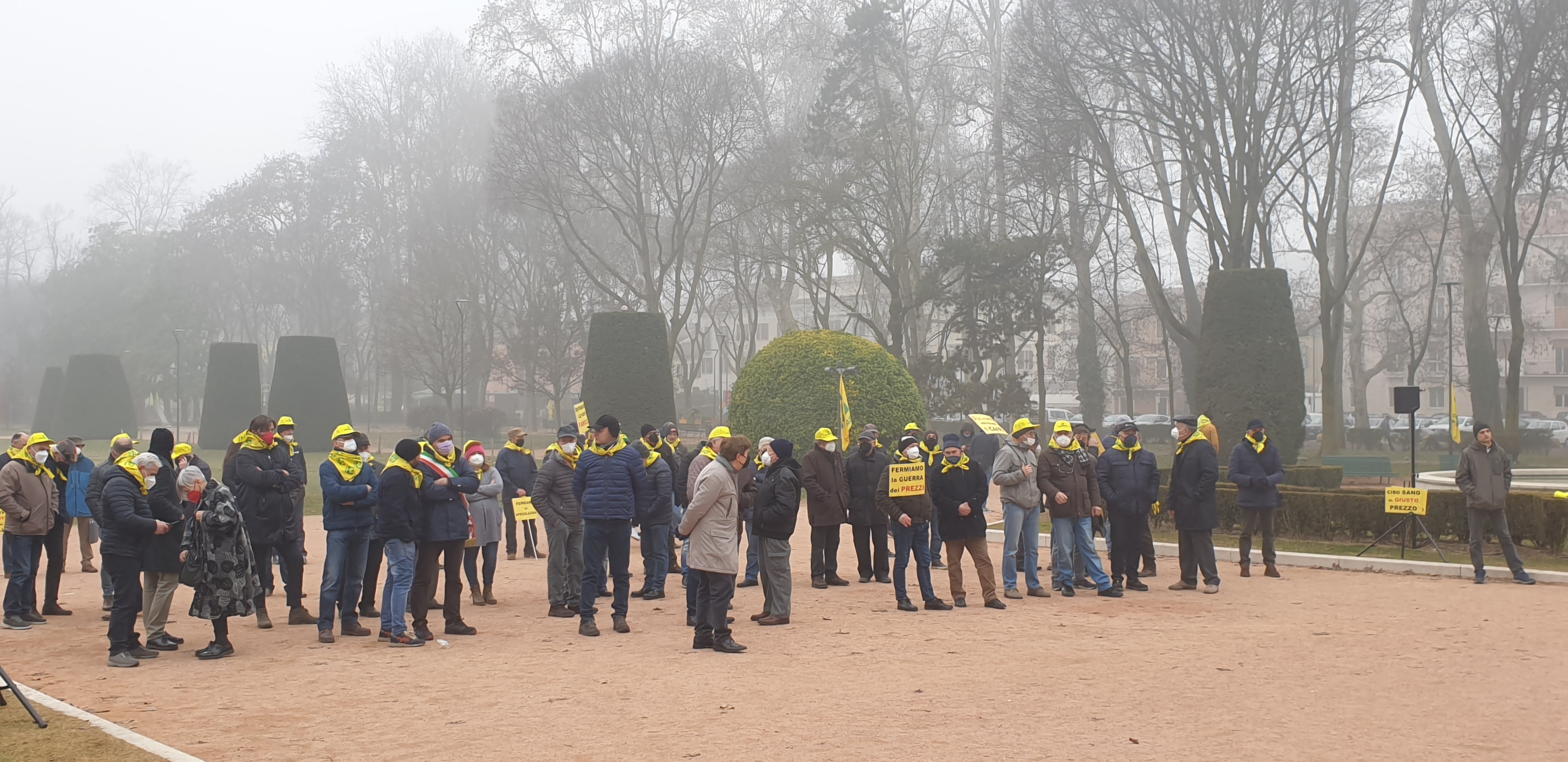 Il grido di Coldiretti è alto anche a Mantova, con oltre 300 agricoltori e allevatori che hanno manifestato nel corso della mattinata in piazza Virgiliana insieme ai parlamentari Anna Lisa Baroni e Andrea Dara (entrambi collegati telefonicamente da Roma), ai consiglieri regionali Alessandra Cappellari, Antonella Forattini e Andrea Fiasconaro, al vicesindaco di Mantova Giovanni Buvoli e a numerosi sindaci e amministratori dei Comuni della provincia. Una manifestazione particolarmente sentita, accompagnata dalla distribuzione ai cittadini di 1.500 borsine con prodotti agricoli di qualità del territorio (latte, formaggio, uova), prima che una delegazione di Coldiretti Mantova – formata dal direttore Erminia Comencini, dal vicepresidente provinciale Fabio Mantovani e dal consigliere regionale di Coldiretti Lombardia Simone Minelli (il presidente Paolo Carra era alla manifestazione di Coldiretti a Milano) – consegnasse al prefetto Michele Formiglio un documento in cui la federazione chiede al presidente del Consiglio Mario Draghi di dare respiro al mondo agricolo e restituire traiettorie di speranza e di futuro, sbloccando ulteriori fondi per investire in fonti energetiche alternative e sostenibili.