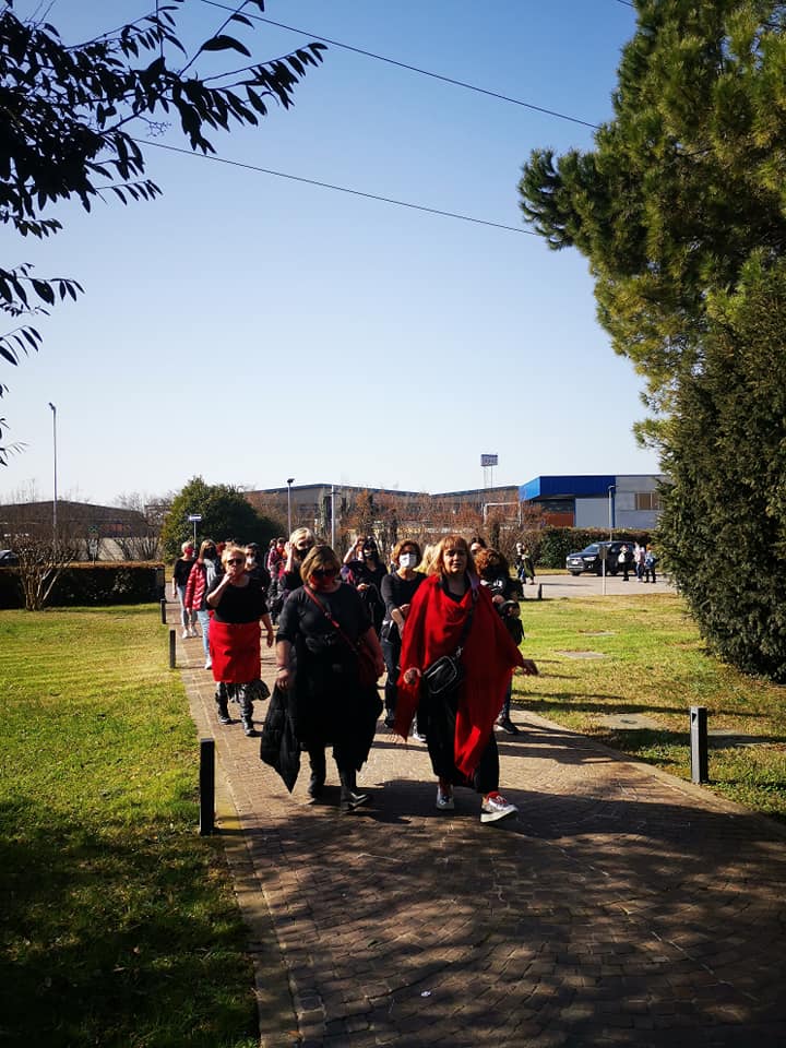 Fatto sta che un lungo corteo di lavoratrici, insieme ad alcuni rappresentanti sindacali, si è incamminato all’interno dell’azienda e ha incrociato proprio Brandazza che, rivolgendosi loro, ha dichiarato che stava uscendo per incontrarle.