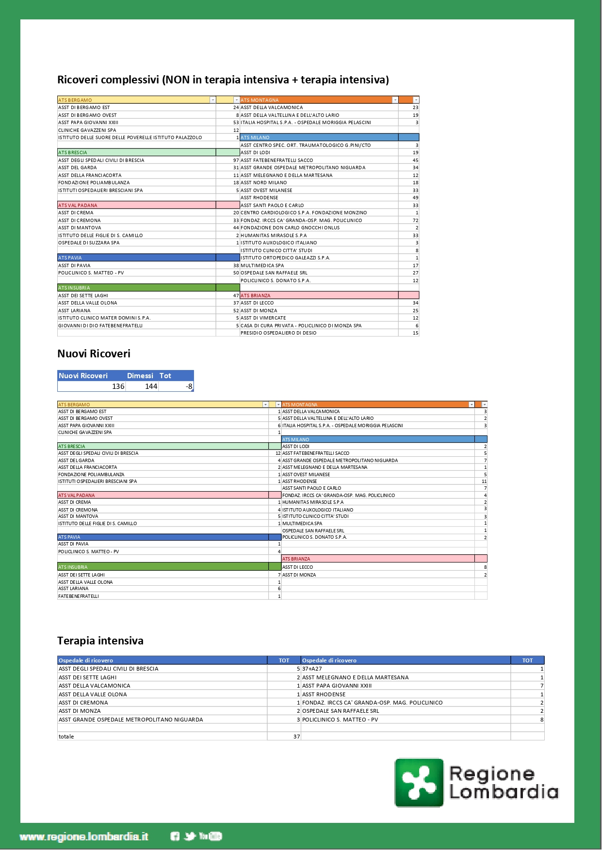 – in terapia intensiva: 37 (-1)