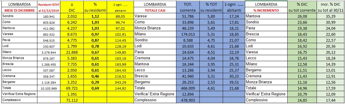 Mantova è la provincia in Lombardia ad aver registrato in dicembre l’incremento più alto di contagi da Covid, calcolato sul numero dei residenti, sia rispetto a quella che era la situazione a fine novembre ma anche sul totale corrente.