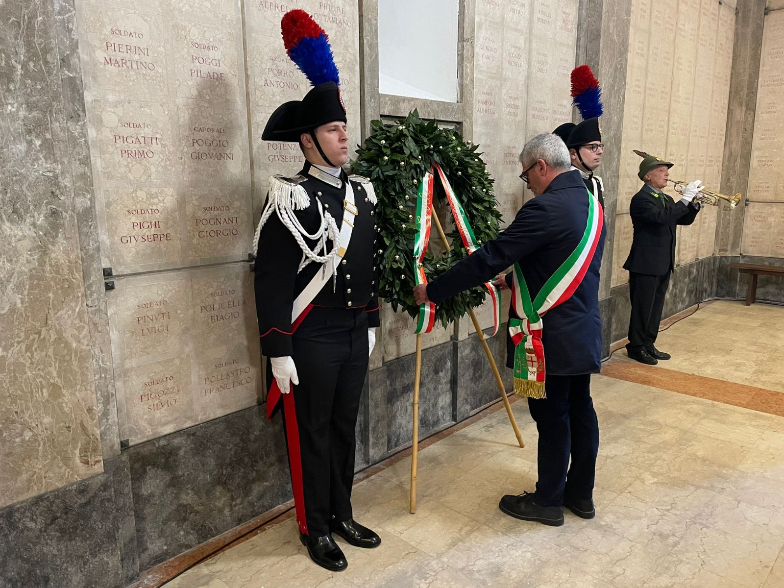 Al Monumentale di Borgo Angeli presso il Sacrario Militare, due Carabinieri del Comando Provinciale dell’Arma, in grande uniforme, hanno trasportato la corona da parte delle Autorità Civili e Militari di Mantova. Al mausoleo ossario la commemorazione dei Caduti.