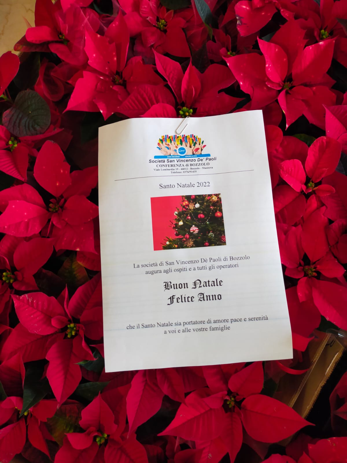 Come ogni anno l ‘Associazione “San Vincenzo” di Bozzolo ha donato, lunedì19 dicembre, un graditissimo pensiero agli ospiti in occasione del Santo Natale. I volontari confermano di avere i nostri ospiti nei loro pensieri e di ricordarsi sempre di loro attraverso l’omaggio di una stella di Natale per ospite.