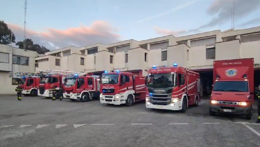 Questa sera il Comando di viale Risorgimento lo ha salutato così: mezzi schierati e lampeggianti.