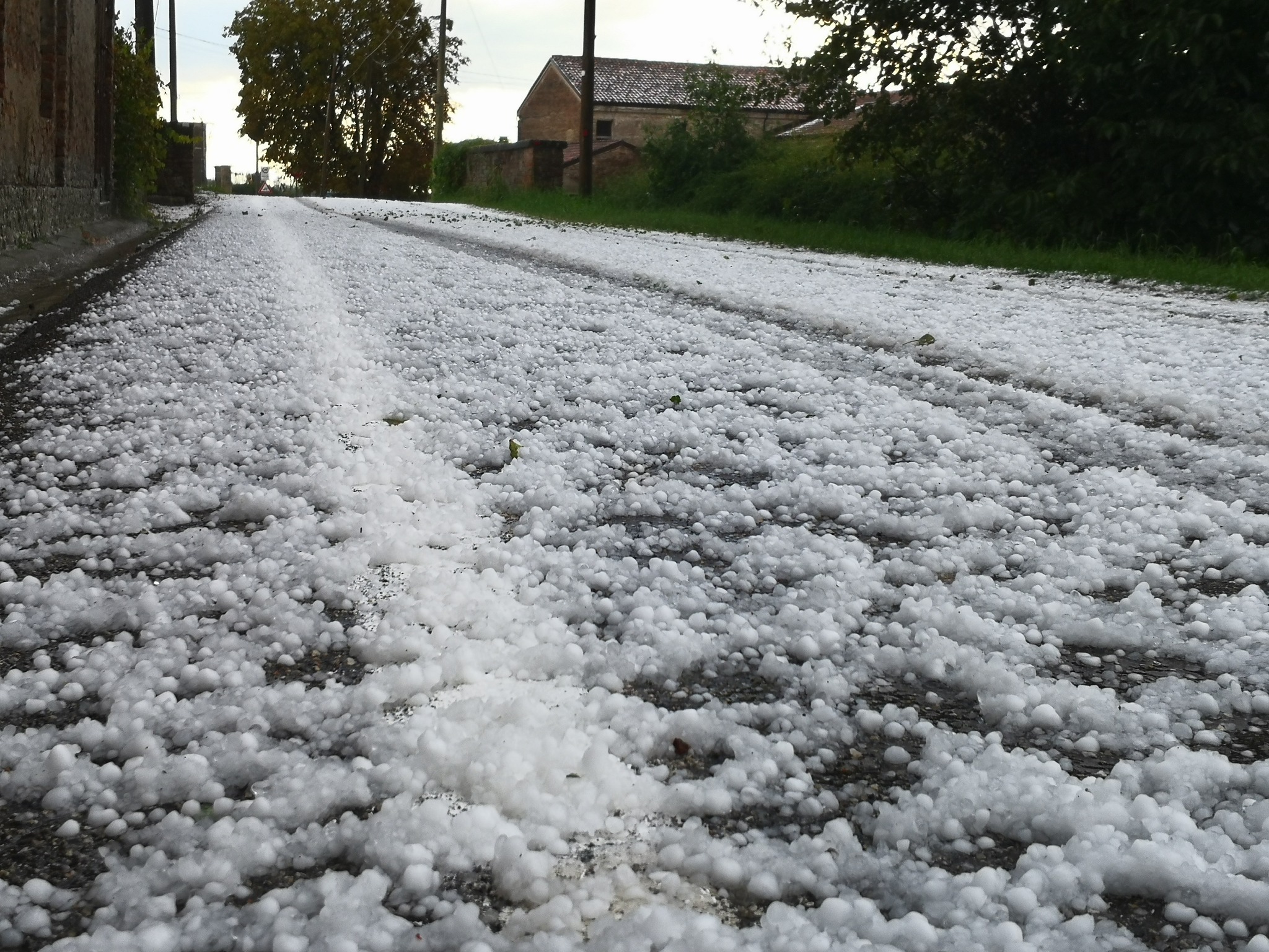 MANTOVA – Grandinata questa sera alle 18 in città e in gran parte della provincia. Era circa un’ora che il cielo si era fatto scuro e si sentivano tuoni in lontananza, poi ad un certo punto, senza pioggia a secco, ha iniziato a grandinare. Chicchi in un primo momento piccoli che si sono velocemente ingranditi fino ad arrivare alle dimensioni di albicocche che si sono poi mescolati alla pioggia e che hanno fatto correre ai ripari sotto i porticati chi poteva proteggere la propria auto intanto che le strade si imbiancavano. Colpita la zona est di Mantova, i viali, il centro città.