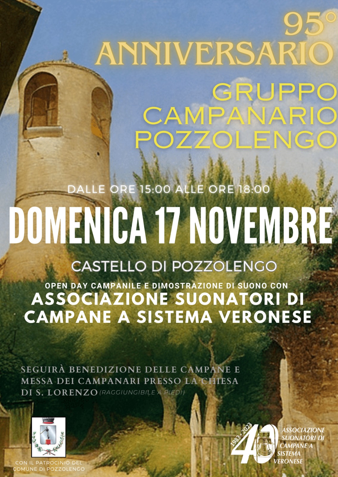 POZZOLENGO – Sarà una giornata importante domenica 17 novembre per Pozzolengo, si festeggia, infatti, i 95° anniversario della fondazione del Gruppo Campanario Pozzolengo, una realtà preziosa per la comunità e custode delle tradizioni.