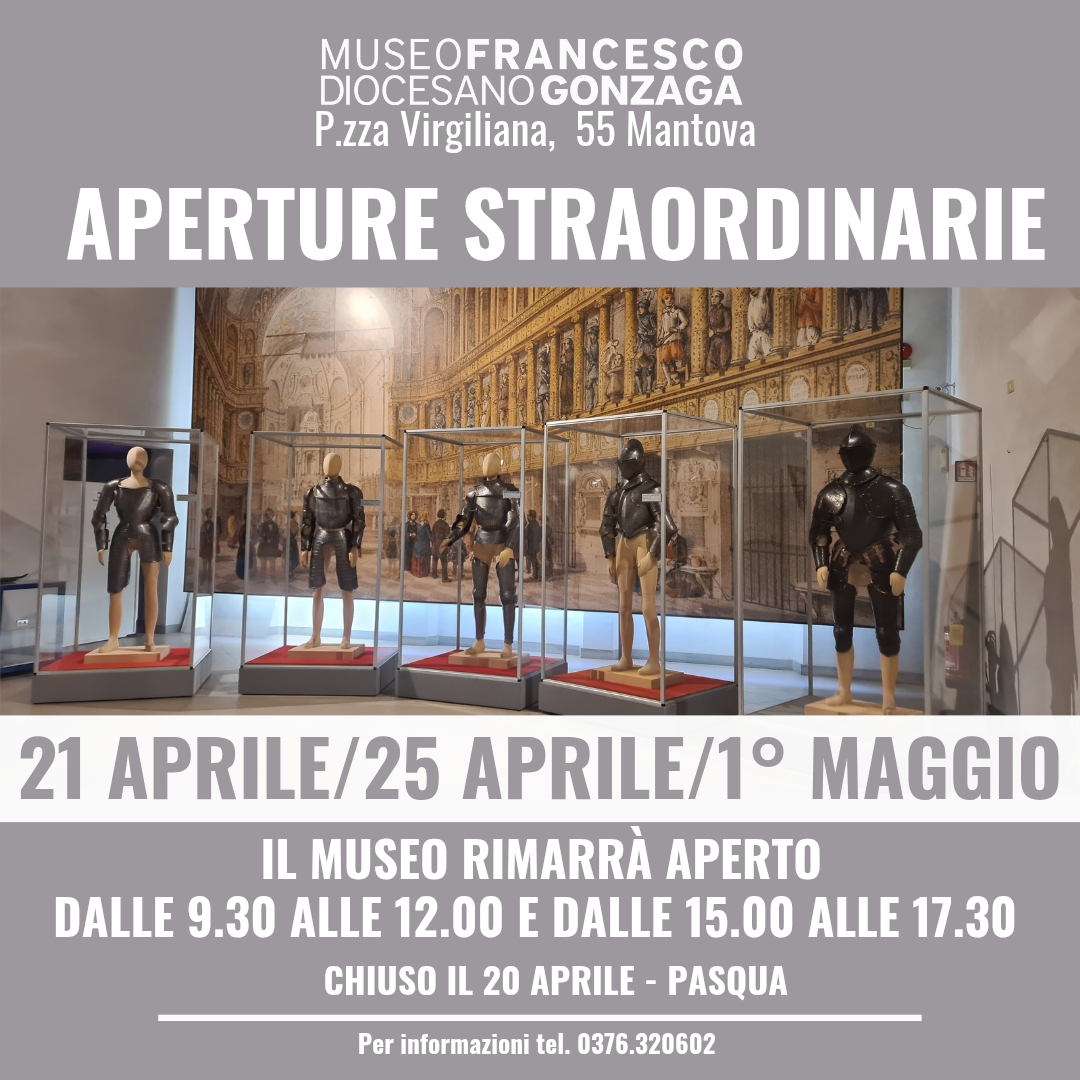 MANTOVA – Aperture straordinarie per il Museo Diocesano Francesco Gonzaga nelle prossime festività. Ecco il calendario.