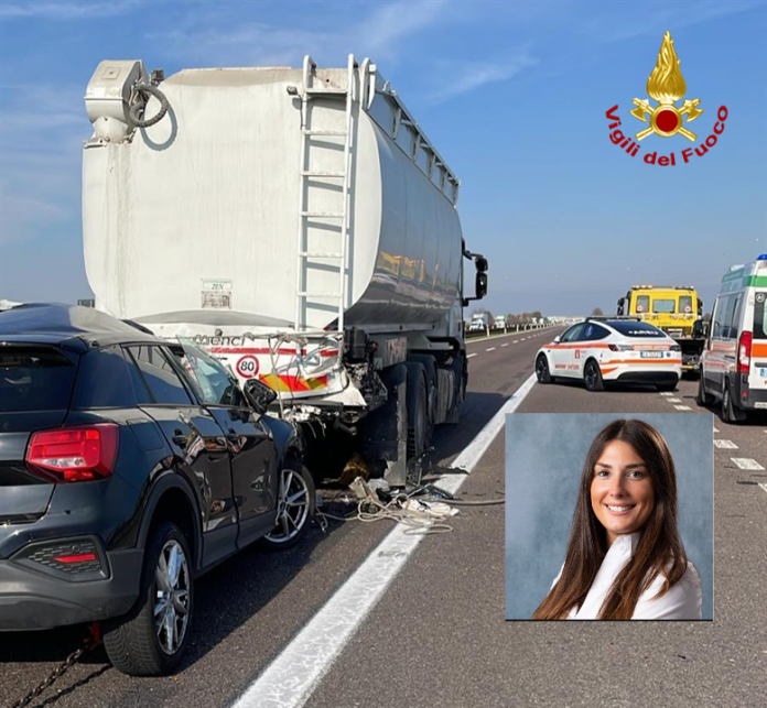 Da un prima ricostruzione la 36enne, al volante di un’Audi, ha tamponato violentemente un’autobotte che stava rallentando a causa di una coda dovuta ad un precedente incidente. L’auto della donna è rimasta incastrata sotto al mezzo pesante.