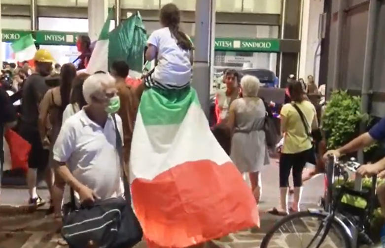 E dopo pochi minuti ecco i primi caroselli di auto in città che di lì a poco invadono tutte le strade del centro, con le bandiere tricolori che sventolano dai finestrini. Non manca qualche camion scoperto con la gente al di sopra che balla e grida la propria gioia.