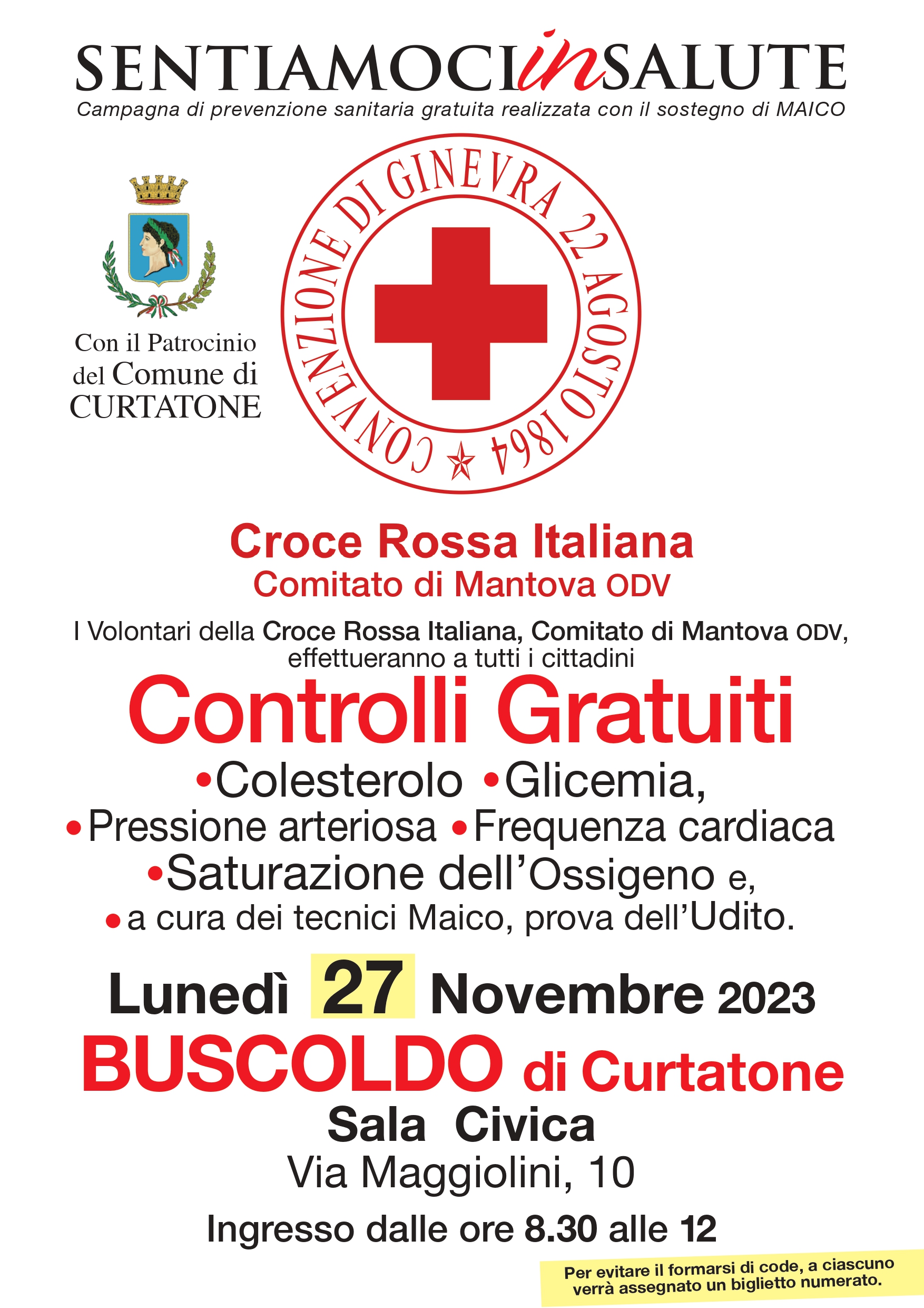 CURTATONE – Grande partecipazione, nonostante il maltempo, a Levata per “Sentiamoci in Salute” campagna di prevenzione sanitaria gratuita realizzata dalla Croce Rossa Italiana di Mantova in collaborazione con Maico e con il patrocinio del Comune Di Curtatone.
