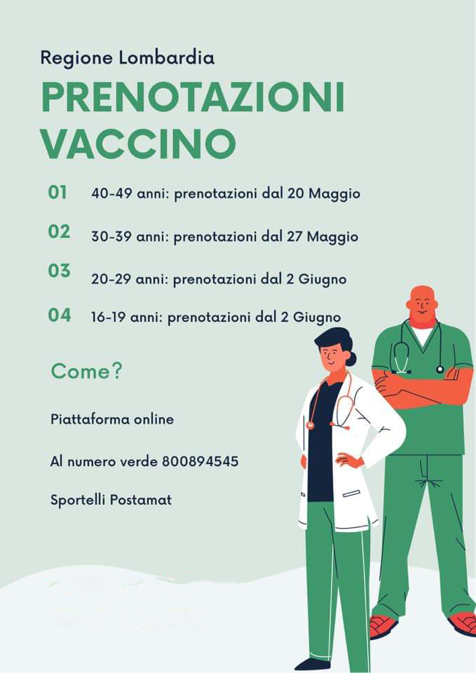 MANTOVA – Il coordinatore della campagna vaccinale per la Regione Lombardia, Guido Bertolaso, durante una conferenza ha annunciato le prossime tappe. Come già annunciato dal 20 maggio toccherà agli over 40 con una stima di 1,2 mln di cittadini. Una settimana dopo e quindi dal 27 maggio spazio ai 940.000 cittadini tra i 30 e i 39 anni. Dal 2 giugno invece toccherà ai 856.000 ragazzi tra i 16 e i 29 anni.
