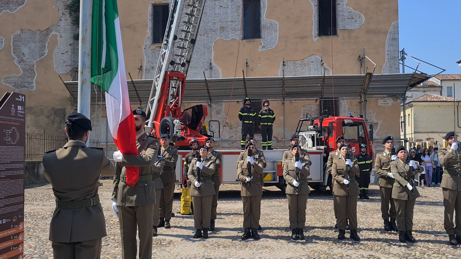 La sfilata ha continuato il suo percorso in via Principe Amedeo e via Acerbi fino a raggiungere il Famedio dei Caduti per dare inizio alle celebrazioni ufficiali davanti ad un pubblico numeroso in uno spazio allestito con le bandiere italiane e delle associazioni combattentistiche, lo schieramento militare. Poi c’è stato il rito dell’alzabandiera, con la spettacolare scenografia dei Vigili del Fuoco, accompagnato dall’esecuzione dell’Inno Nazionale a cura del coro “Voci in Festa città di Mantova”, la lettura del messaggio del Presidente della Repubblica, Sergio Mattarella, a cura del prefetto Iorio, la deposizione e benedizione della corona in onore dei caduti presso la cripta del Famedio e, in conclusione le ultime due esibizioni del coro “Voci in Festa città di Mantova”.