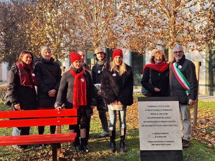 MANTOVA – “Nel 2024 sono state oltre 370 le donne nel nostro territorio vittime di violenza e che hanno chiesto aiuto”: questo il dato drammatico sottolineato dall’assessore comunale alle politiche per la famiglia e alle Pari opportunità Chiara Sortino oggi, durante la cerimonia dello scoprimento di una targa accompagnata da una panchina rossa all’interno del giardino di Palazzo Soardi.