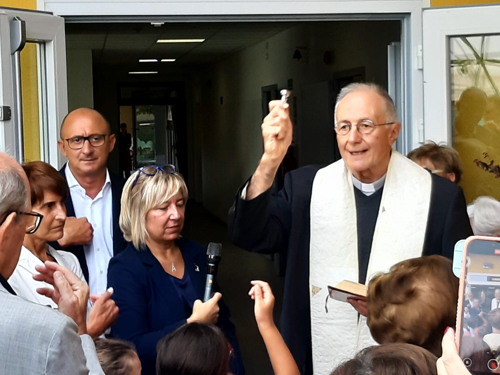 Emozionante la benedizione di don Gibelli, così come il momento dello scoprimento della targa della scuola sulle note di Super Quark e la consegna delle chiavi da parte del primo cittadino al dirigente scolastico.