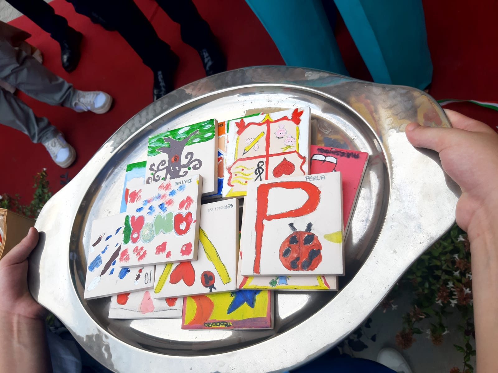 Anche i bimbi della scuola hanno contribuito consegnando le formelle realizzate questa estate che andranno a decorare gli ambienti.