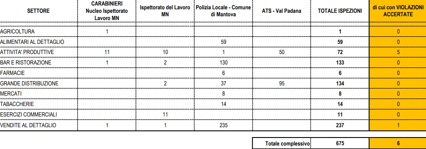 MANTOVA – Continuano le attività di controllo da parte del Nucleo Ispettivo, istituito dalla Prefettura, lo scorso 43 maggio. Il compito della task force formata da Carabinieri, Ispettorato del lavoro, Polizia Locale del Comune di Mantova e Ats Valpadana, è quello di monitorare la ripresa delle attività commerciali e produttive, assicurandosi che vengano rispettati i protocolli di sicurezza. Come segnala la tabella qui di seguito, sono 6 le violazioni riscontrate.