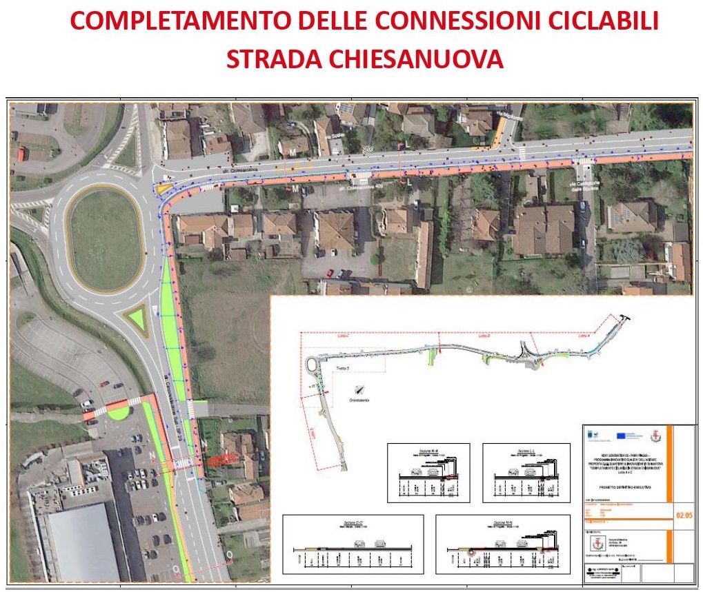 Sempre all’interno del Pinqua è previsto il completamento delle connessioni ciclabili di Strada Chiesanuova per un investimento totale di circa 780mila euro. Per ora è stato approvato il progetto esecutivo e si aspettano i fondi per procedere con i lavori entro luglio, che dovrebbero poi durare circa 9 mesi.