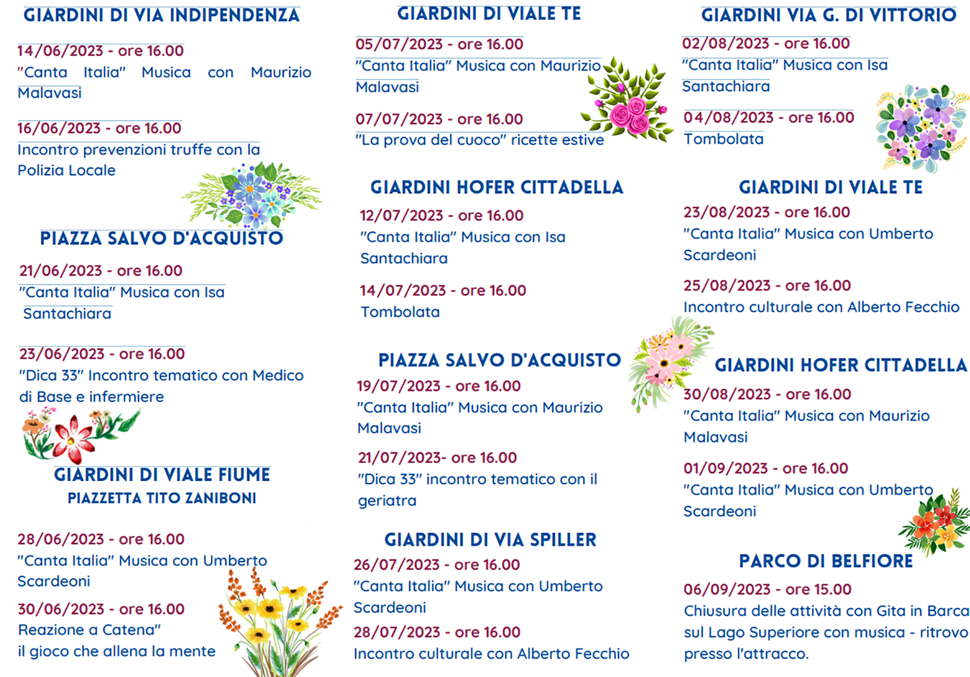 Prossimo appuntamento fra due giorni, il 16 giugno alle ore 16, sempre ai Giardini di via Indipendenza con un incontro con la Polizia Locale sulla prevenzione contro le truffe.