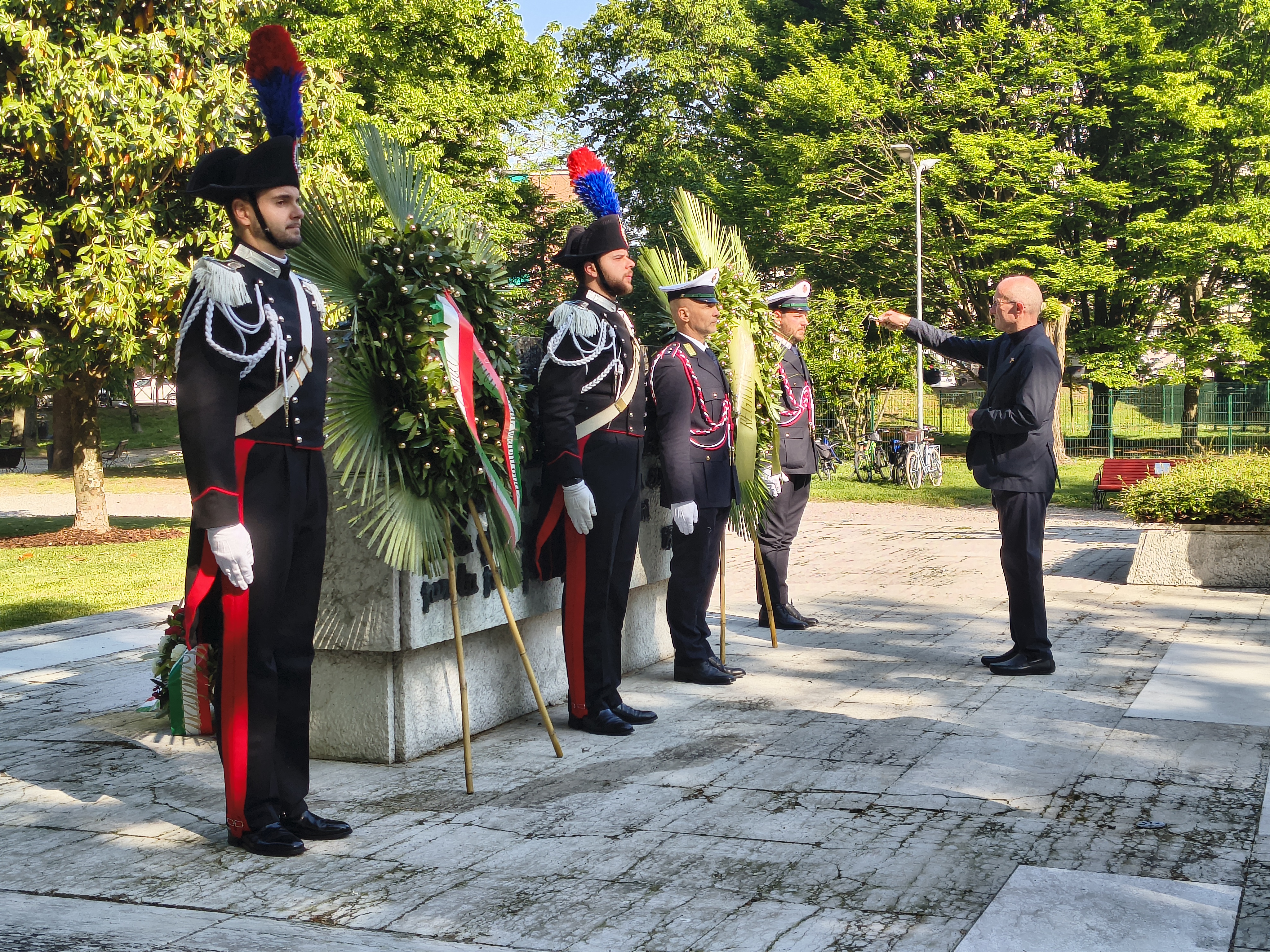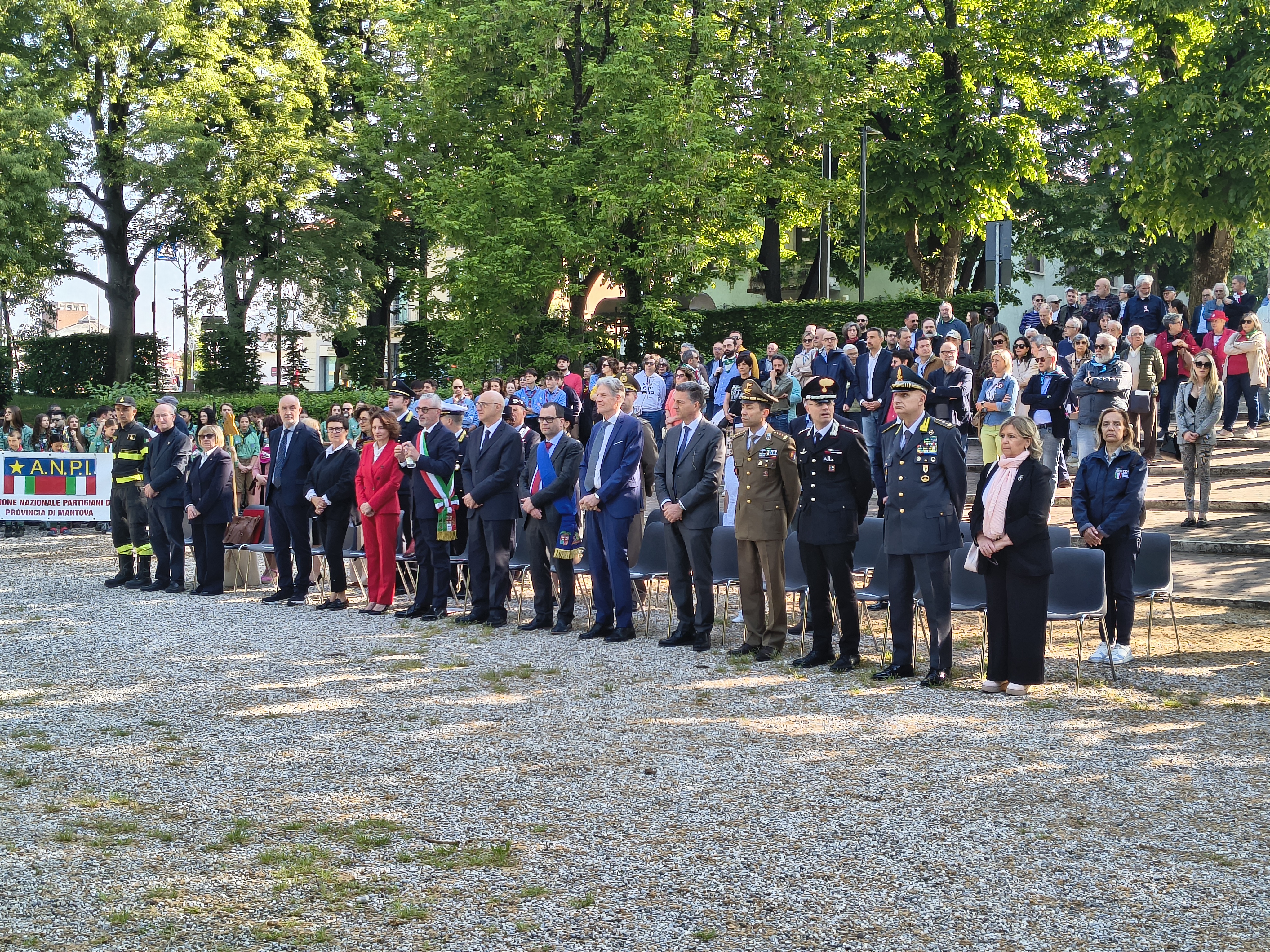 MANTOVA – Gli onori ai Caduti, la deposizione delle corone d’alloro presso il monumento di viale Piave (e poi al Famedio), il picchetto d’onore e l’inno nazionale, la benedizione da parte di don Alberto Formigoni. Questa mattina, come ogni anno, le autorità civili e militari, oltre a tanti mantovani, si sono ritrovate per celebrare la Liberazione e ricordare le centinaia di mantovani che hanno dato la vita per la patria e un mondo senza fascismo.
