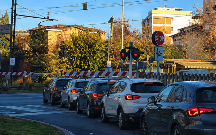 MANTOVA – Sbarre del passaggio a livello davanti al vecchio ospedale abbassate per oltre venti minuti oggi pomeriggio, con la circolazione letteralmente paralizzata nella zona di viale Oslavia e automobilisti sempre più spazientiti per la lunga attesa in coda. È quanto accaduto intorno alle 17, quando il transito di un treno merci ha provocato la chiusura del passaggio a livello davanti al vecchio ospedale senza che, però, le sbarre tornassero successivamente ad alzarsi.