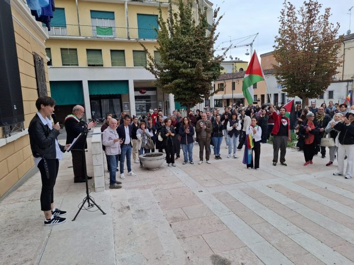 Iniziativa alla quale hanno aderito vari Amministratori locali, Parrocchia di Pegognaga, Anpi, Pd, Giovani Democratici, movimenti pacifisti e tantissimi cittadini e cittadine uniti nel grido comune “Stop al genocidio, Palestina libera!” Ha aperto la manifestazione Viola Messori capogruppo di Riattiviamo Pego dicendo «Siamo in piazza per chiedere la sospensione di ogni forma di cooperazione militare con Israele, compresi forniture, trasferimenti tecnologici e addestramenti, fino alla cessazione delle gravi violazioni del diritto internazionale e umanitario. Abbiamo chiesto al Governo italiano di fare pressione politica e diplomatica onde garantire l’accesso immediato degli aiuti umanitari a Gaza e scarcerazione e rientro di tutti gli attivisti della Resistenza Globale Sumud Flotilla e di attivarsi per la cessazione immediata del fuoco con la liberazione degli ostaggi detenuti da Hamas. La pace è un diritto ed insieme la difendiamo e l’affermata nella nostra piazza». Messori ha ricordato che nel consiglio comunale del 30 settembre RiAttiviamo Pego ha depositato una mozione urgente per sollecitare azioni concrete contro il genocidio a Gaza.
