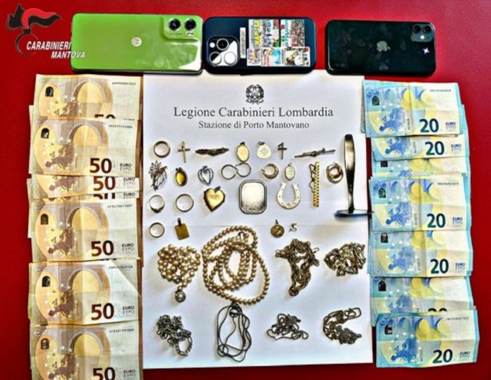 PORTO MANTOVANO – Si sono presentati come uomini delle forze dell’ordine, con modi sicuri e un’auto di lusso per rendere credibile la messinscena. In pochi minuti erano riusciti a sottrarre 850 euro in contanti e circa 300 grammi di gioielli in oro a un’anziana di 81 anni. Ma la fuga dei due truffatori è durata pochissimo: i Carabinieri della Stazione di Porto Mantovano li hanno arrestati in flagranza differita, recuperando l’intera refurtiva.