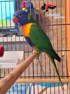 SERMIDE E FELONICA – Nei giorni scorsi un cittadino ha segnalato ai Carabinieri Forestali il ritrovamento di un pappagallo nel proprio giardino. Gli agenti del nucleo di Mantova hanno verificato che si trattava di un trichoglossus haematodus, specie tutelata dalla convenzione internazionale C.I.T.E.S..