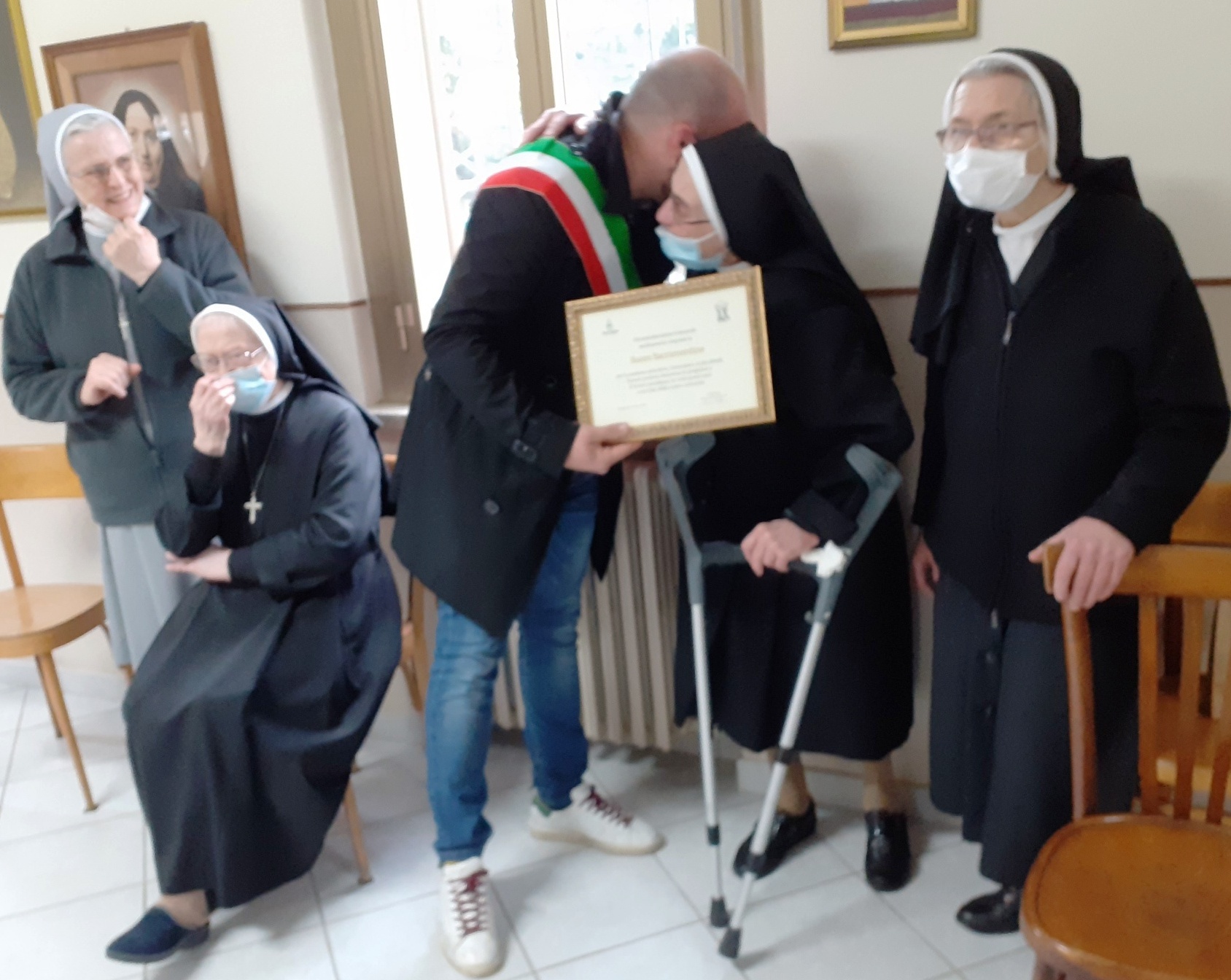 Tant’è che il sindaco Matteo Zilocchi, accompagnato dal vice Antonio Lui e dall’assessore alla cultura Silvia Scarduelli, nel momento di consegnare l’attestato di benemerenza alle Sacramentine, si è lasciato prendere da una forte emozione che gli ha impedito di leggerne scorrevolmente la motivazione “L’Amministrazione Comunale sentitamente ringrazia le Suore Sacramentine per la passione educativa, l’attenzione ai più deboli, l’amore profuso attraverso la preghiera e il lavoro quotidiano in tutti questi anni a servizio della nostra comunità”.