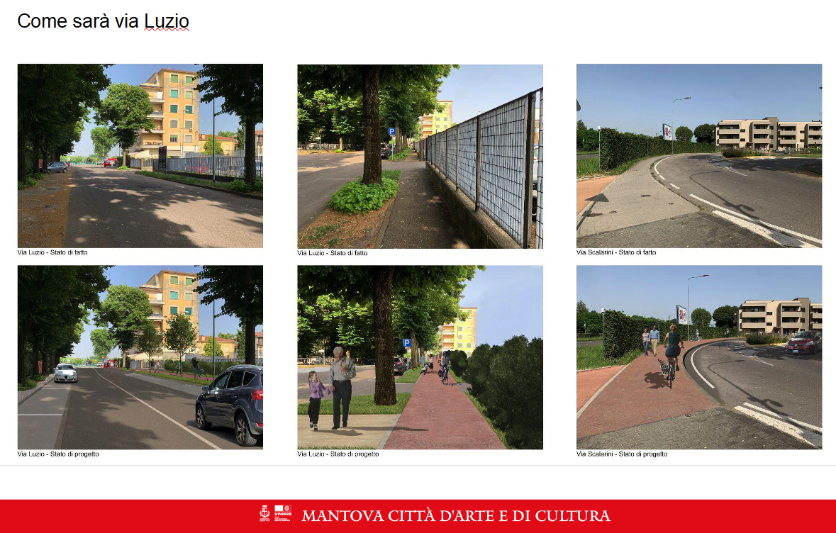 Al termine dei lavori, via Luzio, via 8 marzo e via Scalarini saranno completamente riqualificate dal Comune che approverà, entro due settimane, il progetto esecutivo che prevede l’inserimento della ciclabile, nuova illuminazione pubblica, sia per la carreggiata che per la ciclabile, marciapiedi, consolidamento delle radici delle piante e parcheggi riposizionati in orizzontale. Previsto anche un sistema di videosorveglianza e due piattaforme rialzate. Il progetto ricalca l’intervento realizzato in viale Piave.