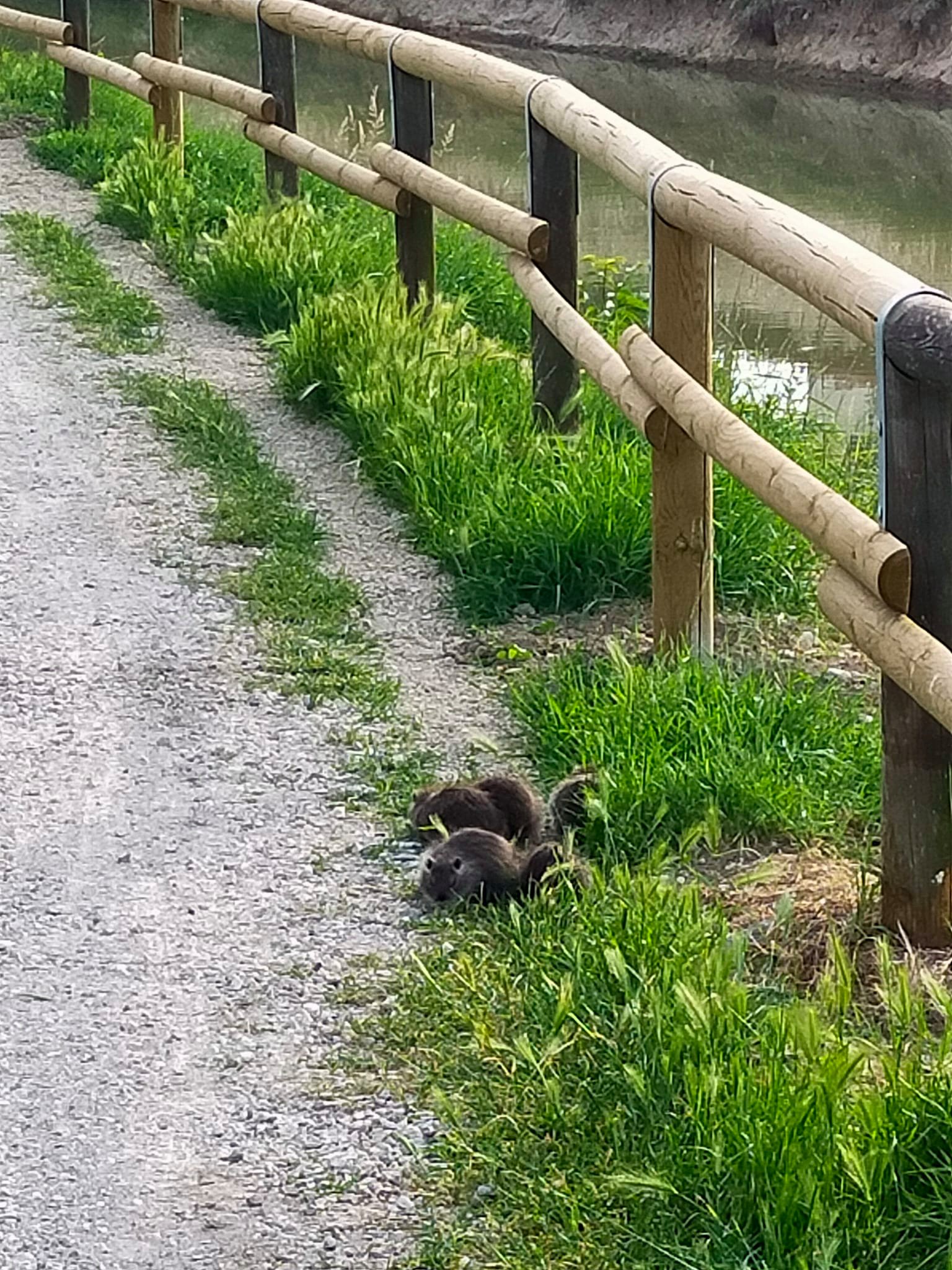 GONZAGA – Sette cuccioli di nutria, nel tardo pomeriggio di ieri, stavano cenando all’inizio della ciclabile che costeggia la bonifica, prima del ponticello per il quartiere Zanetti. E mentre i piccoli cenavano, i genitori sguazzavano allegramente nell’acqua lì vicino.