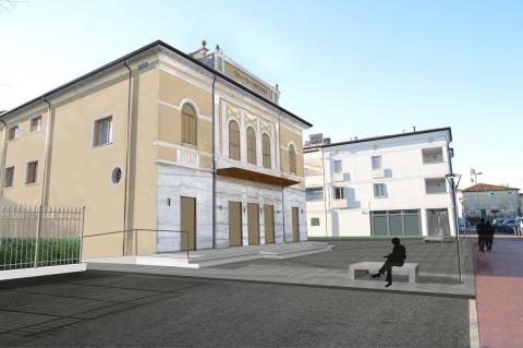 All’esterno, l’area antistante il teatro sarà trasformata in una piazza pubblica, pensata come luogo di ritrovo e aggregazione. Ai lati verrà installata una vasca di riserva idrica, utile in caso di emergenza incendi.
