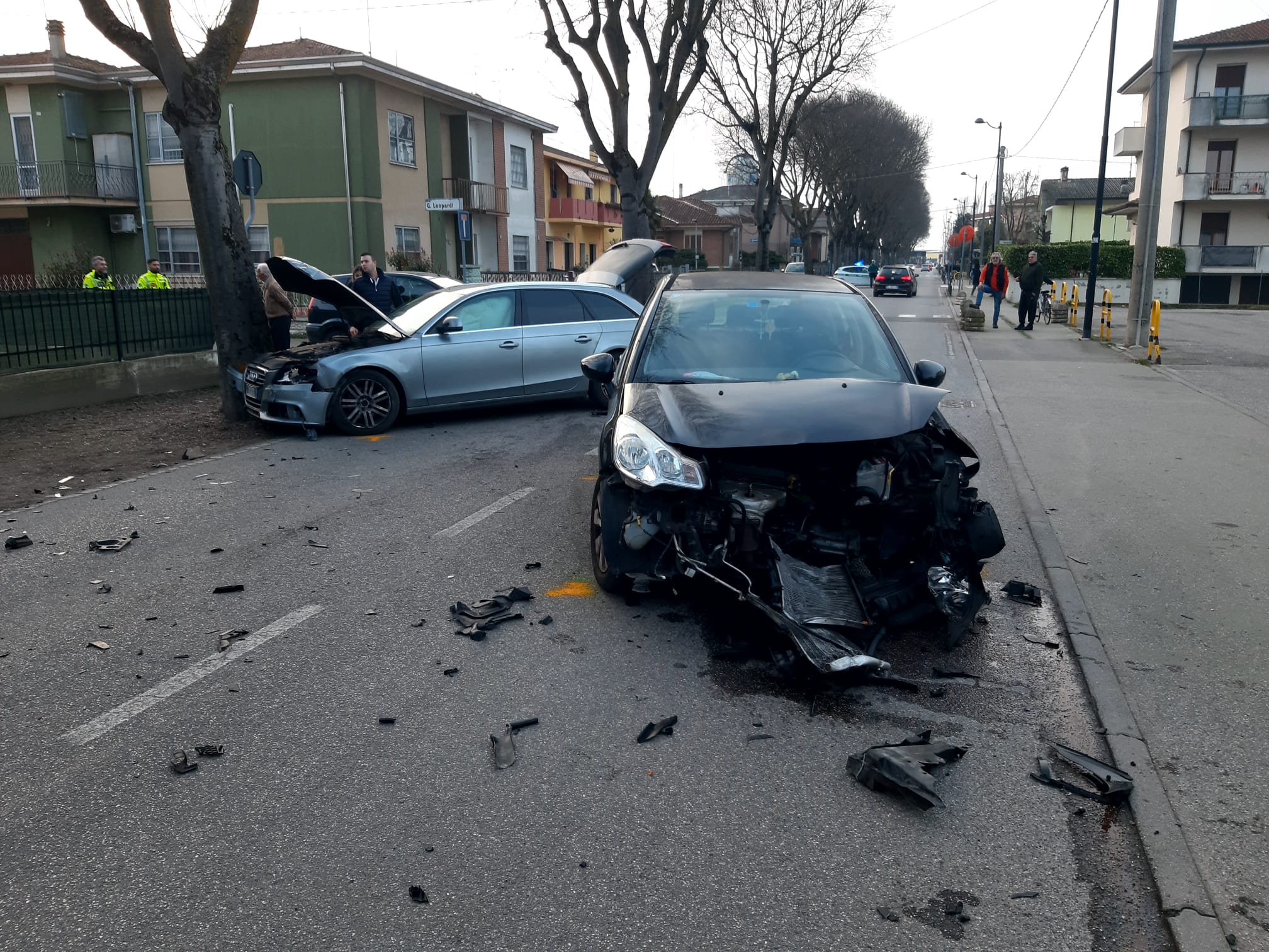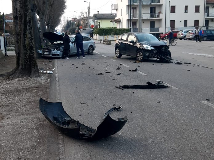 SUZZARA – Incidente nel pomeriggio di oggi, poco prima delle 17, in via Toti all’incrocio con via Leopardi a Suzzara, dove per cause ancora in fase di accertamento, si sono scontrate due auto: un’Audi A4 station wagon e una Citroën C3.