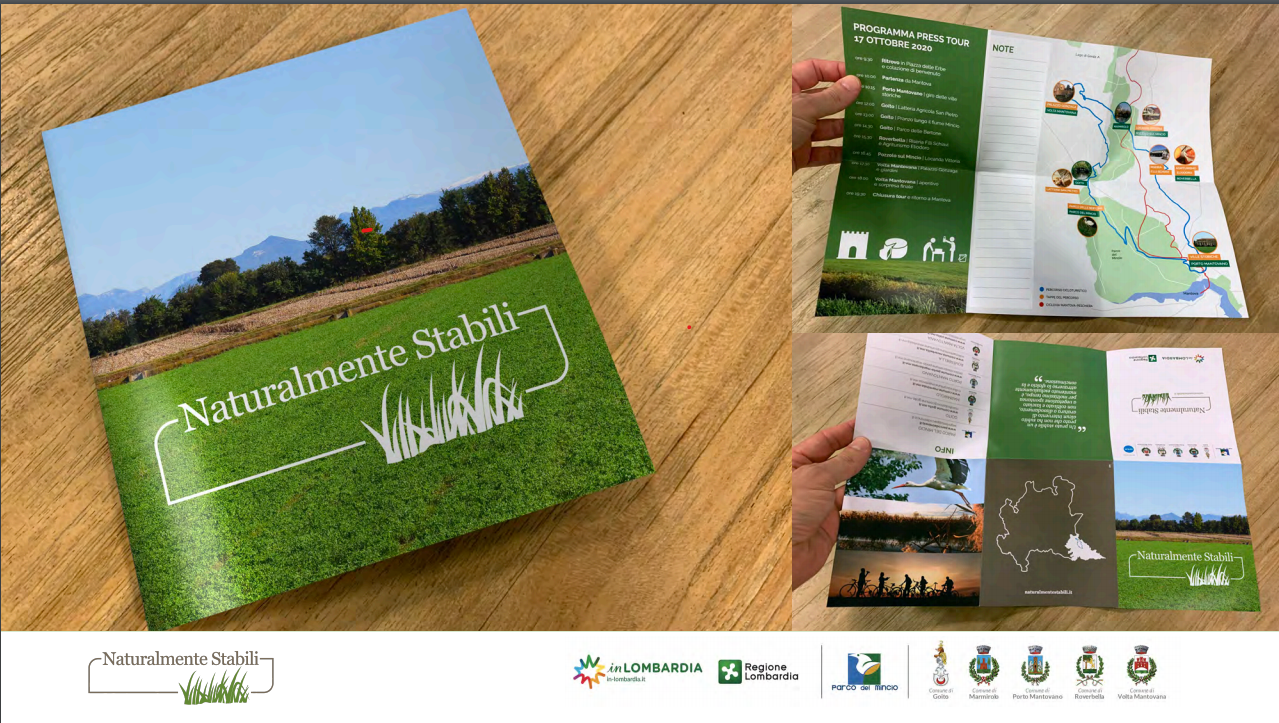 Tra i prodotti realizzati vi sono: una guida bilingue da 76 pagine, mappe territoriali, materiali didattici per scuole e famiglie, allestimenti per futura partecipazione congiunta a eventi e fiere, il rilascio del sito web www.naturalmentestabili.it , una campagna social, il piano di storytelling, la produzione di un video https://youtu.be/jSQEhxAOOLc e un servizio fotografico (FOTOGALLERY https://naturalmentestabili.it/photo-gallery/ ) che con più di mille scatti documenta le particolarità dei territori tra collina e pianura caratterizzati dalle distese verdi dei prati stabili. Un corredo di strumenti utili a indentificare il territorio dei prati stabili del Mincio come nuova destinazione turistica per un turismo di prossimità, per i turisti del bacino del Garda, per le famiglie.