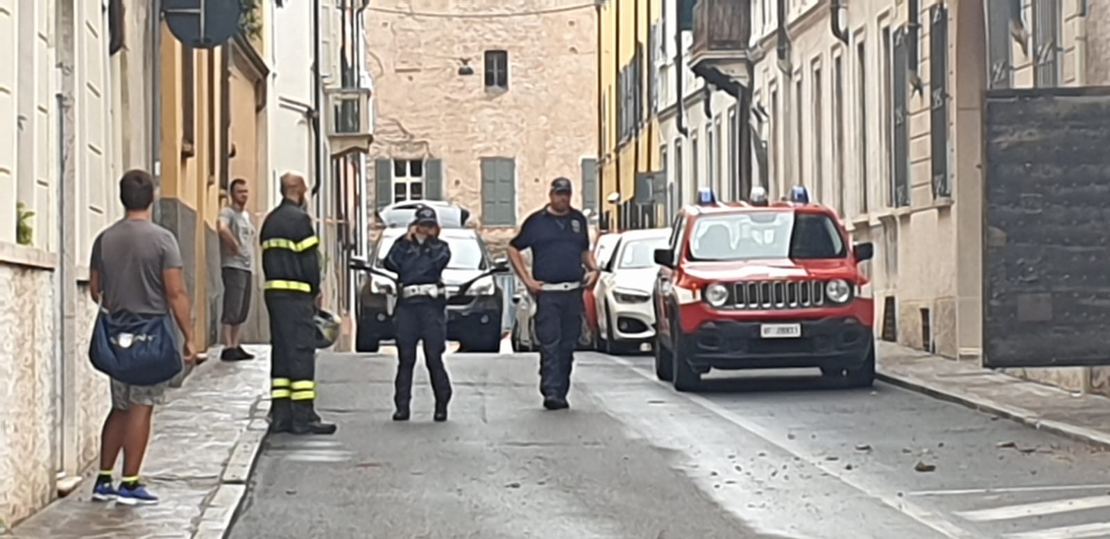 I Vigili del fuoco sono riusciti a raggiungere l’abbaino della torre, quindi sono arrivati sul tetto dove hanno potuto vedere che si sono staccati alcuni pezzi di cornicione provocando la caduta dei calcinacci.