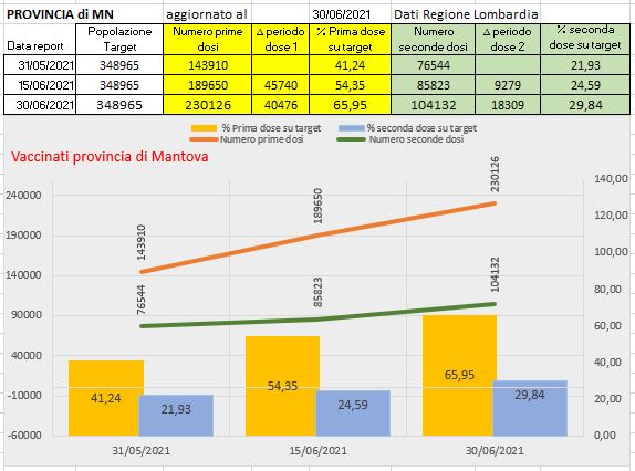 Complessivamente poco meno di 90mila (precisamente 86.216) i mantovani vaccinati nel mese di giugno con la prima dose, circa 28mila (27.588) con la seconda.
