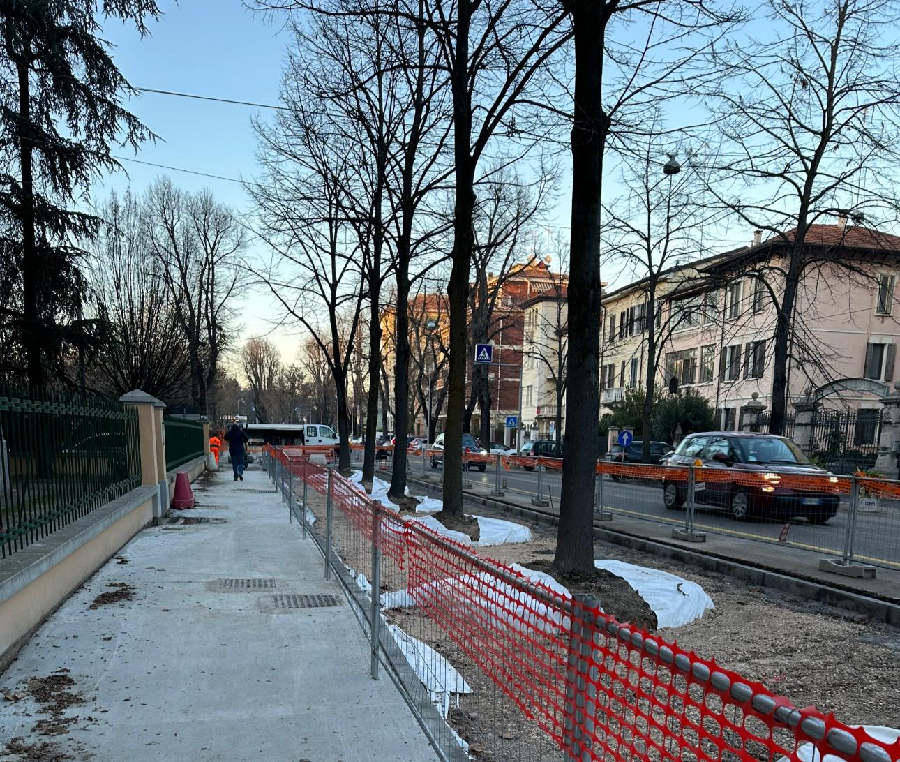 “Il cantiere procede bene, la ciclabile nuova è terminata, manca solo la resina che sarà data in primavera e posati i nuovi punti luce. Si stanno completando gli attraversamenti e la pavimentazione drenante tra le piante, per i posti auto. Nel frattempo il cantiere si sta spostando sul lato di piazzale Gramsci” – spiega Palazzi.