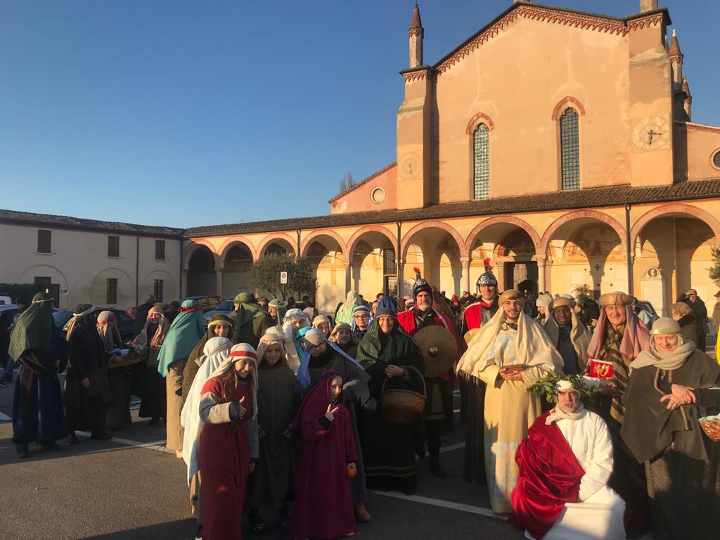 CASTIGLIONE – Quasi 5000 persone all’ultima rappresentazione del Presepe vivente di Castiglione, con la tradizionale processione dei Re Magi, partita dal Duomo e arrivata sino alla zona del castello, dove si è svolto l’evento. Anche nel centro aloisiano c’è stata la benedizione delle arance e dei bambini da parte di Monsignor Giangiacomo Sarzi Sartori. In totale 180 i figuranti in questa undicesima edizione. Nove i nuclei familiari che hanno interpretato a turno la Sacra Famiglia. “Secondo le nostre stime sono stati 15mila i visitatori, con un incremento di circa 2mila unità rispetto all’edizione precedente – ha detto Walter Pastelli, presidente del gruppo “Presepe vivente”, composto da 15 persone che si occupano dell’organizzazione – Quest’anno c’era anche la possibilità di visitare la stele che indica l’esatto luogo di nascita di San Luigi Gonzaga. Siamo soddisfatti, tanti visitatori sono arrivati dal Garda, ma alcuni anche dall’Emilia, dal Bergamasco e dal Veneto. Molti fedeli originari dell’Est Europa sono venuti a visitare il nostro Presepe, così come alcune famiglie indiane. Volevo ringraziare tutti i gruppi che ci hanno dato una mano: l’associazione carabinieri in congedo, la Gru-Gro, l’associazione San Cristoforo, il Gruppo Alpini, il gruppo organizzatore della Festa di San Luigi e il coro “Dieci alle Undici”. Ringraziamo anche la Golden Point per il sostegno all’iniziativa”.