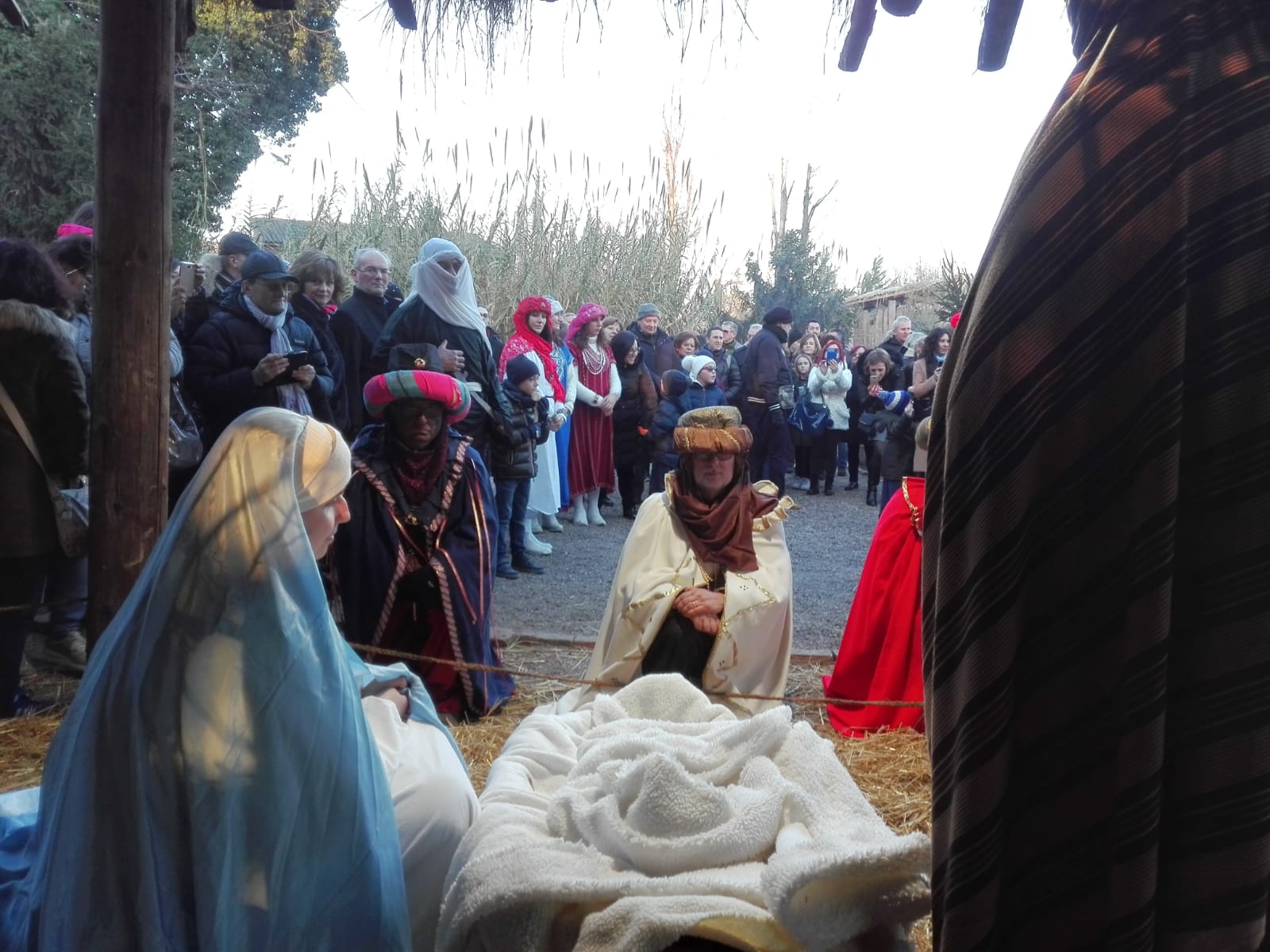 GRAZIE – Centinaia di visitatori all’ultima rappresentazione del Presepe vivente di Grazie di Curtatone. Prima si è tenuta la Messa nel Santuario locale, poi la tradizionale benedizione delle arance e dei bambini da parte di don Cristian Grandelli e don Stefano Savoia. Infine, alle ore 15.30, il Presepe. Il ruolo di Gesù Bambino è stato interpretato dalla piccola Giulia, di soli due mesi.