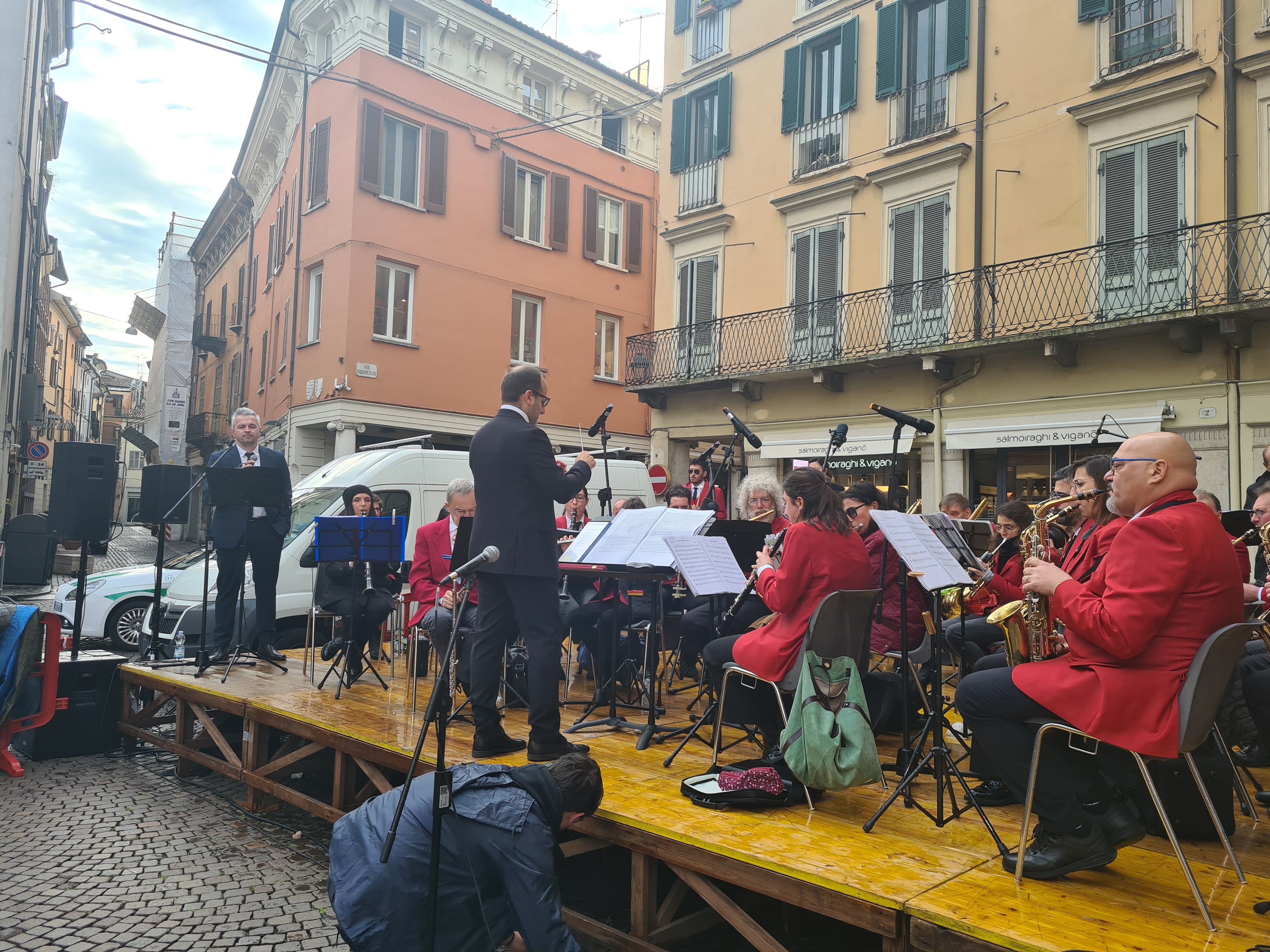 Il concerto, posticipato di un’ora a causa del maltempo si è aperto con il discorso del Presidente del Consiglio Comunale, Massimo Allegretti, che con parole importanti ha ricordato il significato di questa giornata così importante per tutto il popolo italiano. A seguire l’inno di Mameli.