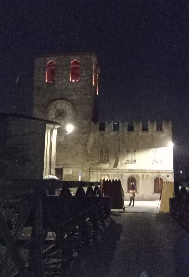 La prima tappa è stata appunto al ponte di ferro, in mezzo tra due antiche rive con il racconto storico poetico sul ponte. Poi ci si è spostati alla Torre Matildica e qui è avvenuto l’incontro con le sentinelle medievali, ed è stato così possibile rivivere, grazie ai rievocatori della Compagnia della Rosa, come avveniva la notte prima della battaglia di Governolo nel 1397.