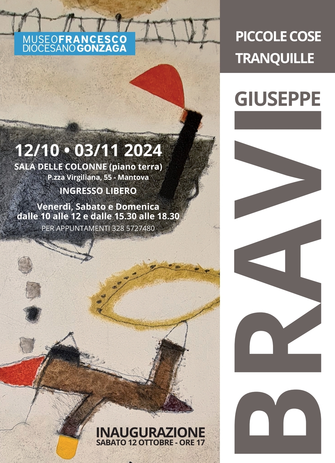 MANTOVA – Tutto pronto al Museo Diocesano per ospitare la mostra di Giuseppe Bravi dal titolo “Piccole cose tranquille”. L’esposizione curata da Alberto Bernardelli sarà visitabile dal 12 ottobre al 3 novembre 2024 con apertura nei giorni di venerdì, sabato e domenica, orari 10-12 e 15,30-18,30. Inaugurazione ufficiale sabato 12 ottobre alle 17.