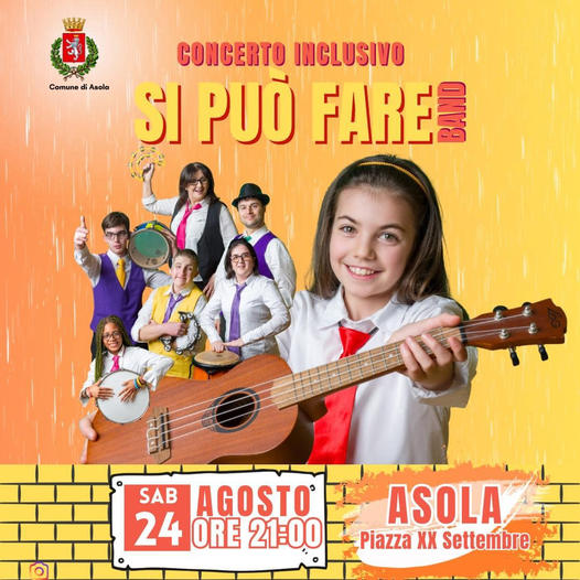 ASOLA – E’ in programma per questa sera alle 21 in piazza XX Settembre il concerto della “Si può fare band”, dopo vari riconoscimenti e l’invito a partecipare il 14 ottobre al “G7 Inclusione e Disabilità” di Assisi ideato dal ministro alla disabilità Alessandra Locatelli, la band diretta dal maestro Davide Zubani è pronta ad esibirsi.