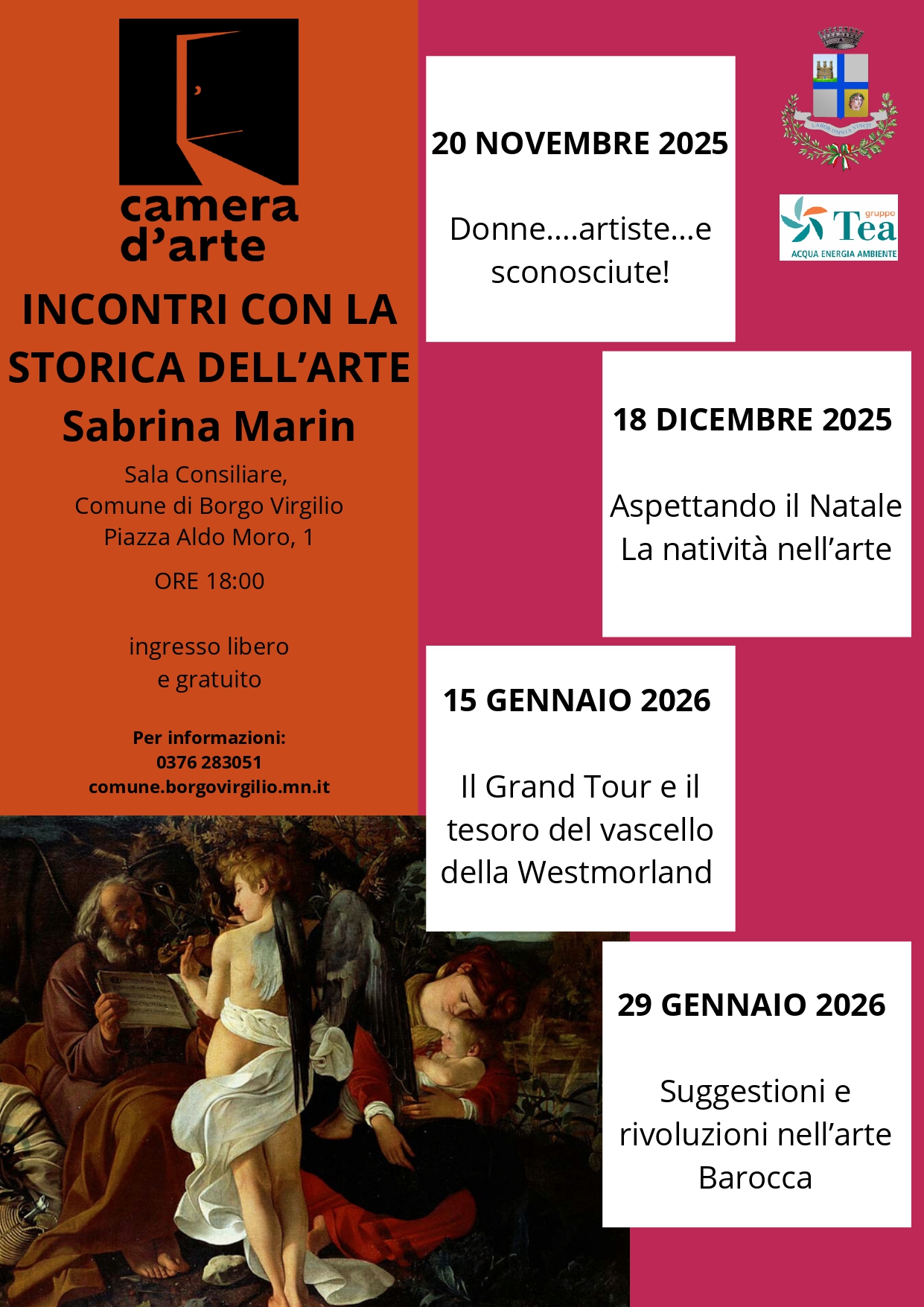 L’iniziativa, promossa dal Comune di Borgo Virgilio, prenderà il via giovedì 20 novembre alle ore 18.00 presso la Sala Consiliare del Municipio (Piazza Aldo Moro 1) e proporrà un nuovo percorso di approfondimento dedicato alla storia dell’arte e ai suoi protagonisti.