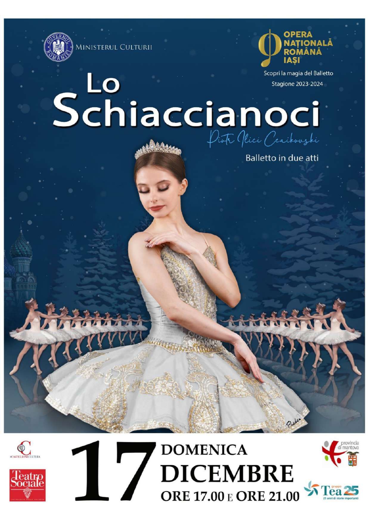 CASTIGLIONE DELLE STIVIERE – Domenica 17 dicembre al Teatro Sociale andrà in scena “Lo Schiaccianoci” con il Balletto dell’Opera Nazionale della Romania di Iași; coreografie di Marius Petipa su musiche di P.I. TCajkovskij.