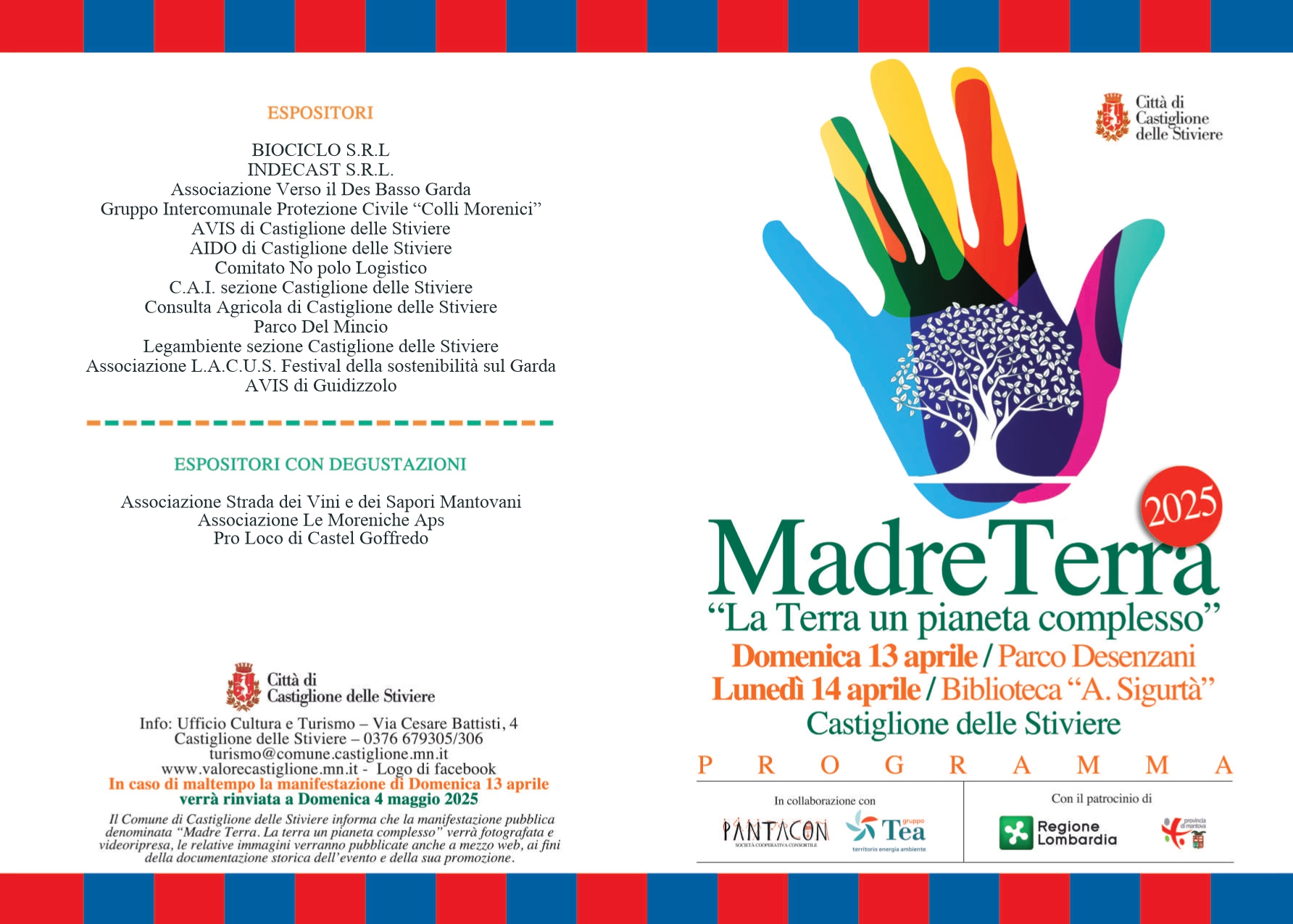 CASTIGLIONE DELLE STIVIERE – A causa delle incerte previsioni meteo previste per domenica 13 aprile. La manifestazione “Madre Terra. La Terra un pianeta complesso” prevista domenica al Parco Desenzani è stata rinviata a domenica 4 maggio con lo stesso programma dalle 9.30 alle 18.00 un’intera giornata con laboratori per bambini, ragazzi e famiglie, spettacoli. Non mancheranno le visite guidate, le passeggiate naturalistiche e le degustazioni.